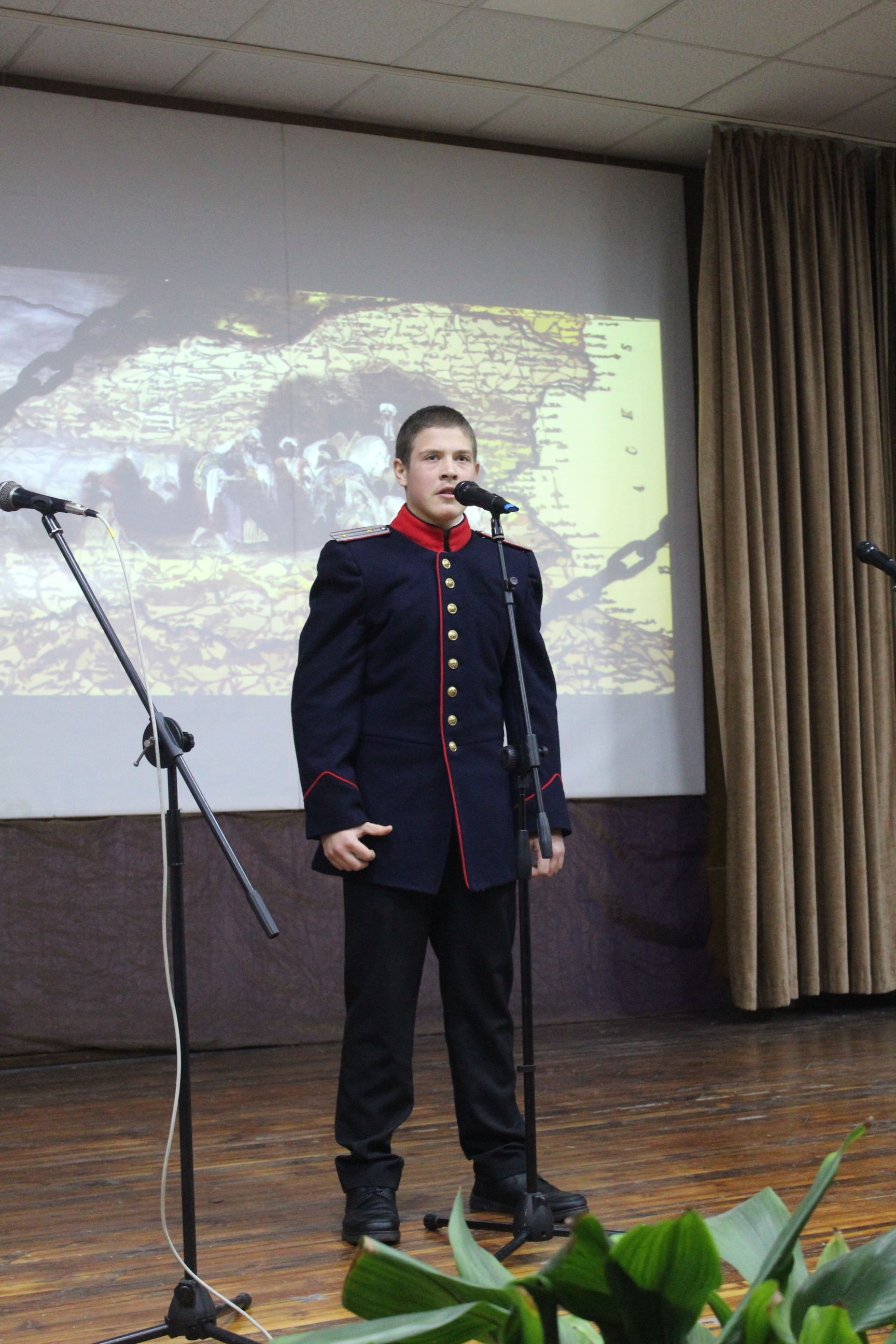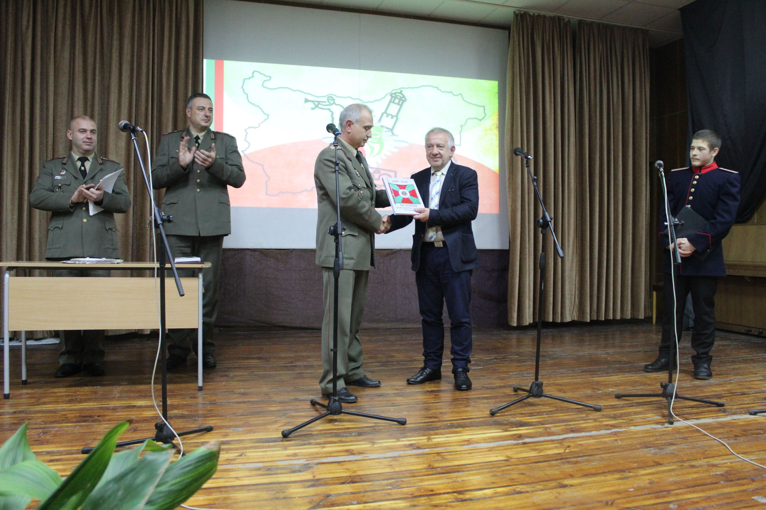 Единадесетокласникът от СУ „Васил Левски“ отвърна подобаващо – рецитира стихове на Ботев и Вазов и подари на присъстващите военни две книжки, съставени от него и съученика му Борислав Маринов