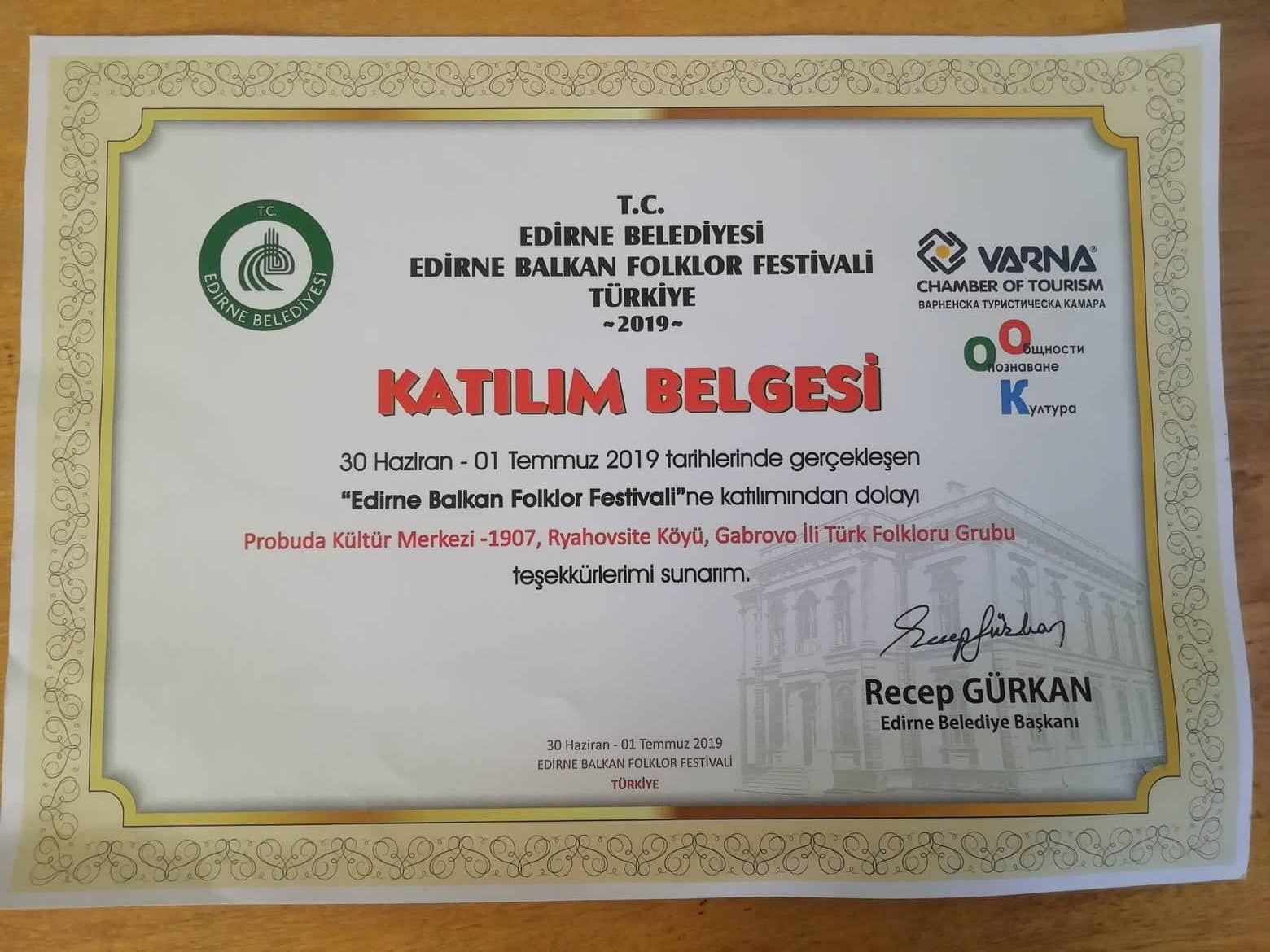 Успешна беше 2019 г. за певиците от групата за турски фолклор при НЧ „Пробуда“ в с. Ряховците. През лятото те прославиха селото и страната си отвъд пределите на родината, участвайки в Балканския фолклорен фестивал в турския град Одрин. Там момичетата от групата са аплодирани от многобройната публика както с атрактивните си носии, така и с нежните си гласове, с които стоплиха душите на всички присъстващи. Това става пред погледите на български изселници, дошли специално да видят и чуят групата от севлиевското село Ряховците. „Наши помощници там бяха Стефка Антонова и Светла Лалева, които, докато ние бяхме на сцената, развяваха знамето на читалището и селото“, разказва Весиле Падикова, която вече 13 години ръководи групата за турски фолклор. От Одрин групата се завръща с плакет и грамота за най-добро изпълнение от кмета на града Реджеп Гюркан.