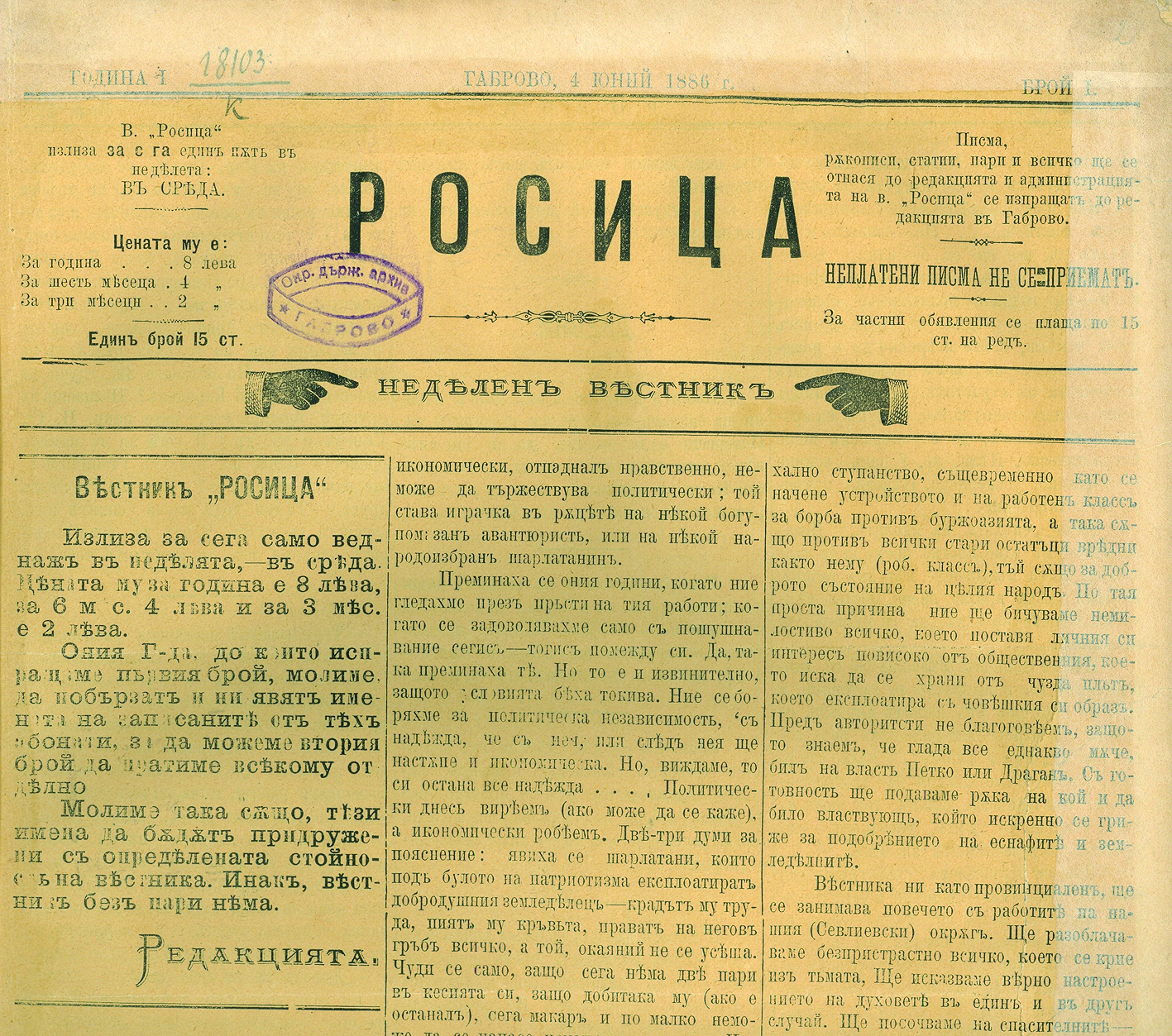 – Вестник „Росица“ е определян като първия социалистически вестник. Но моят прочит на старите издания показва, че той е първият социалдемократически вестник, защото самият Евтим Дабев е бил социалдемократ. А, ако избегнем политическия му профил, бих казала, че през всичките тези години той е имал народностната кауза да обединява хората, да бъде будител. И това е било цел и верую на всички главни редактори, журналисти, сътрудници, краеведи, които са работили в него през всичките години, независимо от обществения строй в страната.