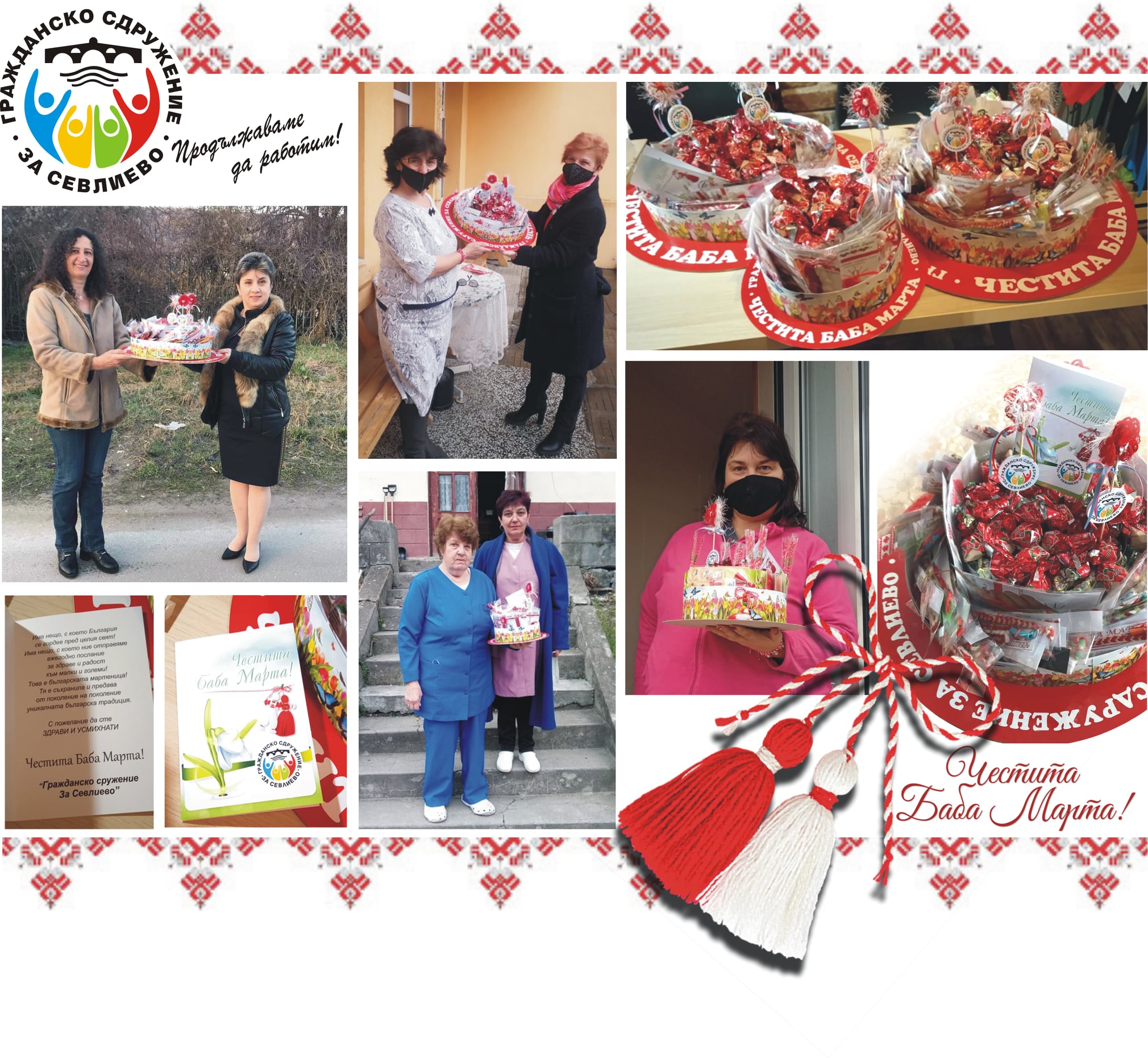 – Така е. През последните три месеца реализирахме шест инициативи. Първата беше на 1 март, когато с мартенички и топли думи направихме деня по-специален за много от възрастните хора, настанени в домовете в нашата община. Опитахме се да забравят, дори за момент, къде са и защо са там, да им покажем, че мислим за тях, дори и да не можем да сме заедно. Някои от тях си нямат никого, а дори и да си имат, в тази световна пандемия, не могат да имат контакти с външния свят. Постарахме с всяка една мартеничка да дадем искрица топлина, която да стопли сърцата им. Изпратихме нашите „торти“ с 255 мартенички в домовете за стари хора в Батошево – 110 бр., в Стоките – 40 бр., в Добромирка – 70 бр. и Столът – 35 бр. Поради епидемиологичната обстановка нямаше как да присъстваме на закичването на мартеничките, но си пожелахме в подходящо време всички да отидем при тях.