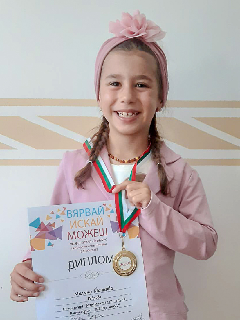 Шестгодишната малка певица от Габрово, Мелани Йонкова се завърна с втора награда в номинация „Изпълнители“ – 1-ва възрастова група, категория „BG Pop music“ от Националния фестивал-конкурс за вокални изпълнители „Вярвай, искай, можеш“. Конкурсът се проведе от 23 до 25 юни на открита сцена в гр. Банкя, организиран от Център за изкуство „Зорница“ град София, с партньорството на СО „Район Банкя“, под патронажа на кмета и Рангел Марков, както и с подкрепата на НФК. Медиен партньор е БГ радио, ТВ ЕК и Е-kids. Мелани бе одобрена след предварителна селекция с видеозапис на песента „Цигани“ из репертоара на Паша Христова, с която участва в конкурсната надпревара. Автор на музиката е Николай Арабаджиев. Талантливото габровче се обучава от една година в школата на г-жа Ценка Горалова, но вече присъства на сцената на два конкурса от които се завръща с награди, участва и в много събития и концертни изяви на ВФ Upstream Voices.