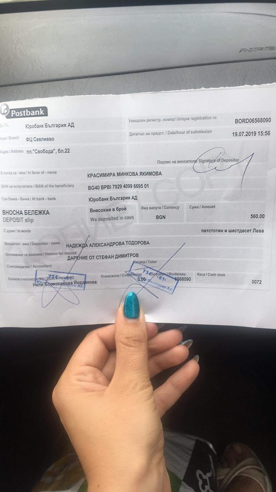 Така севлиевецът преведе общо 560 лева по дарителската сметка на жената. Преди той да предостави тази сума, са събрани 3000 лева от общо необходимите за лечението 4000 лева.