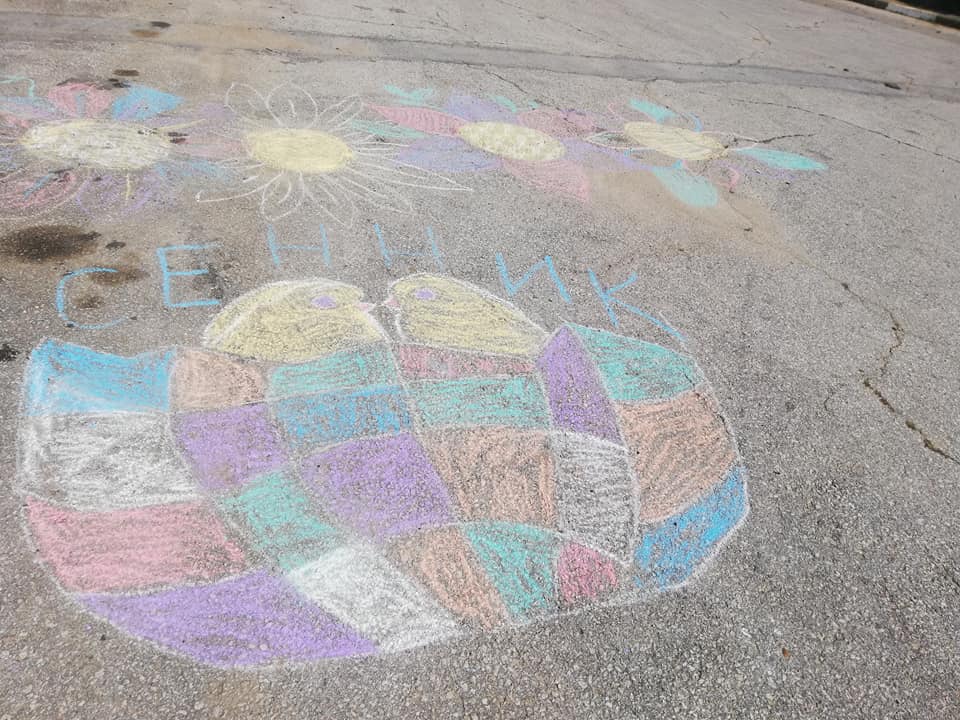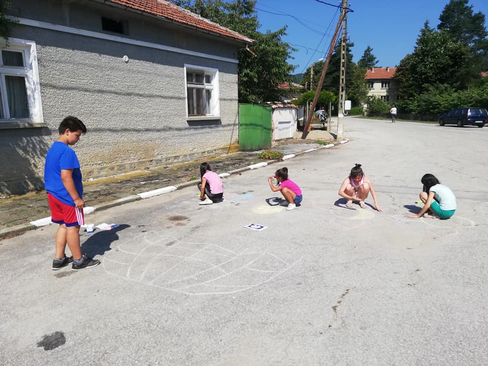 С голямо въодушевление Мартин Кинев, Преслава Косева, Цветомира Кинева, Йорданка Иванова и Никол Найденова рисуваха на открито с цветни тебешири. А изпод детските ръчички изникна сантиметър по сантиметър логото на асамблеята „Знаме на мира” и красиви „тебеширени“ цветя допълниха картината, нарисувана в памет на Людмила.