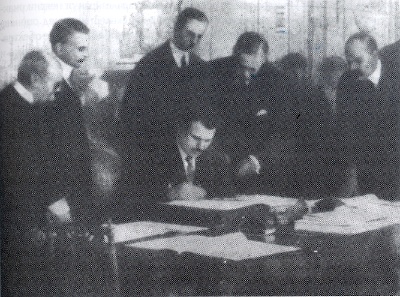 Антантата печели войната и капитулират Централните сили. Като техен съюзник и Ц. България е губеща страна. Така се стига до унизителния Ньойски договор. Ньой тогава е предградие на Париж, столицата на Франция. Разположен е северно от Булонския лес с 52,435 жители през 1918 г. Този документ е подписан на 27 ноември 1919 г. от министър председателя на Царство България и представители на Антантата за установяване на мир. Българската делегация е била поставена при унизителни условия – под стража, без право на възражения и предложения.
