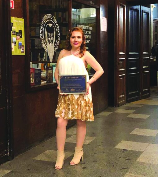 Чаровната учена, която е докторант трета година в катедрата по Екология и опазване на природната среда на Биологическия факултет, получи същото признание и миналата година. Тази година то й е връчено за всеотдайността й „в мисията за помощ и подкрепа на студентските интереси и идеи, в името на по-доброто ни образование, по-добрите ни условия за реализация и вярата в смисъла от гражданската активност, която да доведе до по-ефективно държавно управление на страната ни“.