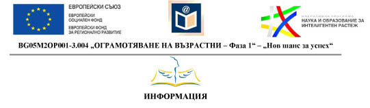 Регионално управление “Образование” Габрово работи по този проект, срокът е удължен до 31 януари 2020 г. Целевата група за ограмотяване е на възрастни над 16 г. Курсовете за ограмотяването им са с продължителност 5 месеца. Успешно завършилите лица, след полагане на финални тестове по предмети от Адаптирания учебен план за възрастни, получават Удостоверение за валидиране на компетентности от началния етап.