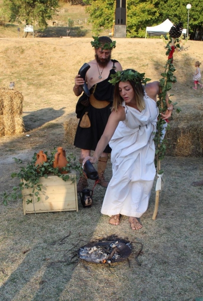Тракийски бог благослови новата гроздова реколта със специален ритуал, включващ танци на вакханки, хвърляне на грозде в огъня и отпиване на вино за здраве и благодат.