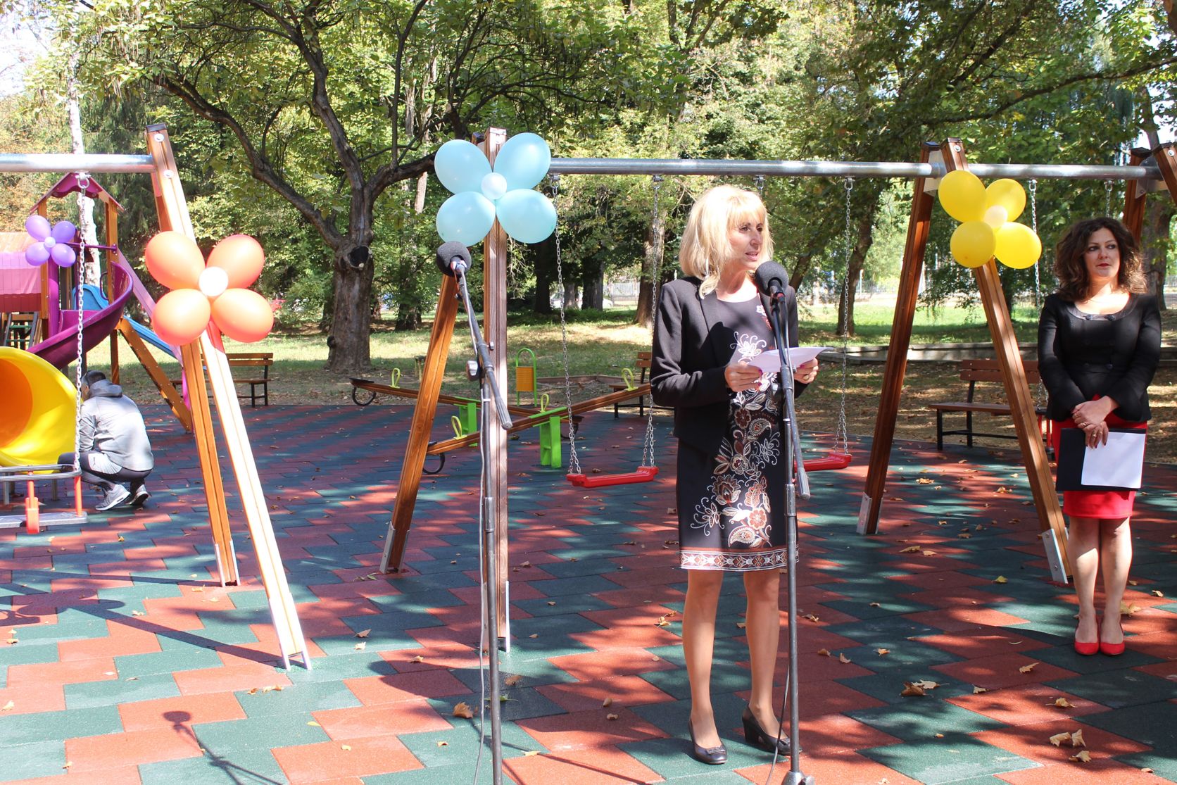 Президентът на Ротари клуб – Севлиево Мария Петрова благодари на Общината за подкрепата при изграждането на новата детска площадка. „Отминава лятото и идва есента, но днес сме се събрали за децата на Севлиево, които са пролетта на града ни. „Пролет“ беше и мотото на нашия бал, който се проведе през месец май, а каузата, за която се проведе, бе за реконструирането и осъвременяването на тази детска площадка в парк „Черничките“. Набраните средства от нашите дарители, съвместно с Община Севлиево, бяха вложени за изграждане на тази детска площадка. За мен е чест и привилегия, като президент на Ротари клуб Севлиево, да открия това чудесно място и да благодаря още веднъж на Община Севлиево и лично на кмета д-р Иван Иванов, който винаги ни е подавал ръка и сме работили съвместно много добре. Нека да продължаваме да имаме общи каузи, ценни за жителите на град Севлиево и да не забравяме, че всяко следващо дело трябва да е по-добро от предишното. Ротари клуб служи на севлиевци“, завърши приветствието си Петрова.