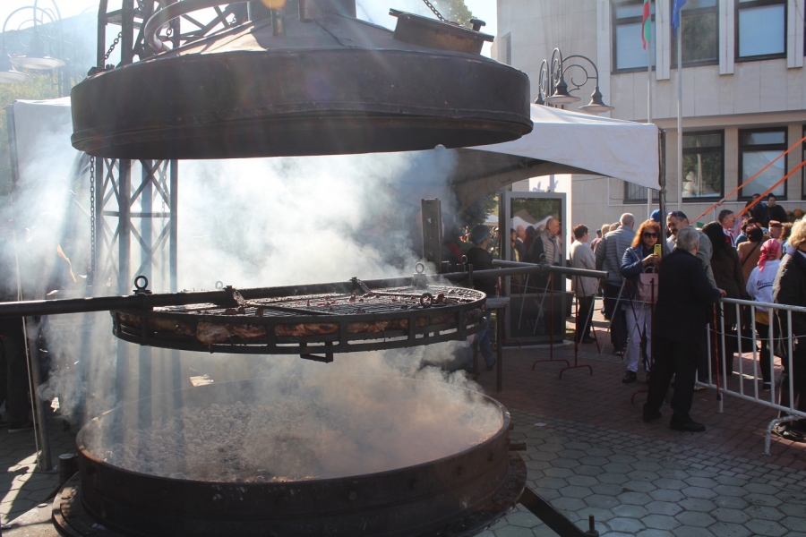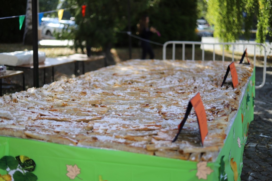И докато площадът постепенно се пълнеше с хора, дошли от близо и далеч за празника на тиквата, рекордно дългият тиквеник вече очакваше да бъде опитан. Сладкишът тази година е с дължина 313 м и е направен от 68 кг кори за паница, 150 кг тиква, 25 кг захар, 13 кг пудра загар, 17 кг орехи, 30 л олио, половин килограм канела и 250 гр. ванилия. След като сложи мръвките да се пекат, Ути посети кулинарната изложба, за да опита изкушенията и да помогне на журито в трудната задача с определянето на победителите.