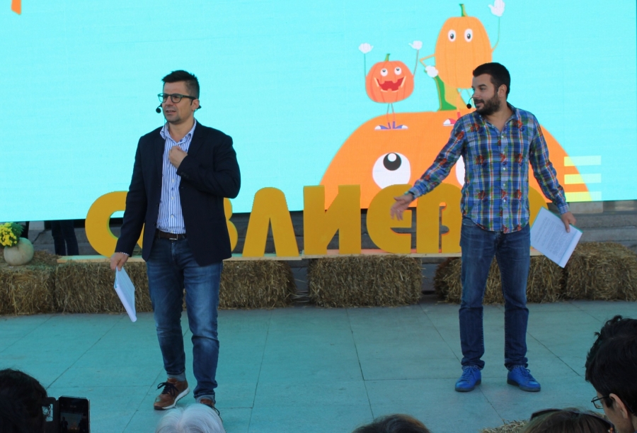Някъде между уханието на мръвки и печена тиква на сцената се появиха и любимите на всички водещи – Иван и Андрей – специални гости на XV празник на тиквата. Те отделиха време да се снимат с почитателите си и дадоха официален старт на програмата, загатвайки някои изненади, които очакват гостите на празника.