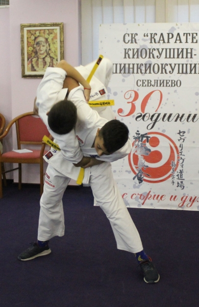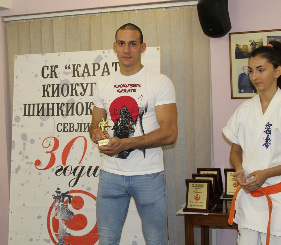 Севлиевският спортен клуб “Карате киокушин-шинкиокушин” отпразнува своя 30-годишен юбилей. Състезатели и ветерани от клуба се събраха на специална вечер, за да отбележат събитието. По повод спортния празник Красимира Йорданова, изпълняващ длъжността кмет на Община Севлиево, връчи специален плакет на сенсей Тихомир Тотев. „Удоволствие е за мен да Ви връча този плакет по повод 30 години от създаването на спортния клуб. Желая Ви в следващите 30 години да имате същия ентусиазъм и заряд, с който през всичките тези години досега сте предавали своя опит и знания на младото поколение севлиевци. Продължавайте в същия дух. Създали сте не само спортисти, с които Севлиево се гордее, създали сте истински хора. И, независимо, че някои от тях се отказват в един етап от спортната си кариера, продължават като хора достойно да заемат своите позиции в нашето общество, благодарението на философията, с която разширявате кръгозора им“, каза в приветствието си Красимира Йорданова. Освен плакет, Община Севлиево бе подготвила и специална торта за младите каратеки.