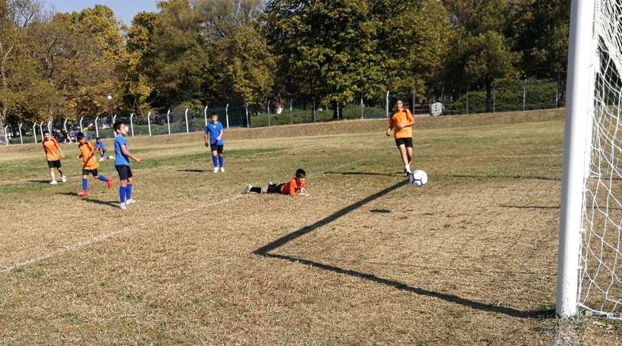 Първи на терена излязоха отборите на ОУ “Стефан Пешев“ и СУ „Васил Левски“. Момчетата на гимназията видимо бяха с година по-големи от момчетата на ОУ „Стефан Пешев“, което се оказа решаващо по време на мача и везните се наклониха в полза на СУ „Васил Левски“. Така с краен резултат от 10:2, за следващия етап на игрите се класира отборът, воден от Венцислав Младенов. Грамота за голмайстор получи Стивиян Макавеев, за „Най-добър вратар“ – Калоян Колев, които са възпитаници на СУ „Васил Левски“. За „Най-полезен играч“ журито определи Николай Неделчев от ОУ „Стефан Пешев“.