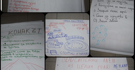“Отборите представиха изключително интересни идеи, като например: да се превърне сградата “Конакът” в исторически музей на освобожденското дело, да се създаде археологически музей в сградата на парк “Казармите” и да се поднови изоставеното виенско колело в парк “Черничките”. Те акцентираха върху подобряването на условията за осмисляне на свободното време, като се постави изкуствена настилка на спортните площадки и нов асфалт на пистите за бягане, да се изградят велосипедни алеи, закрит тенис корт и скейт парк. Обърнаха специално внимание и на проблема с паркирането в града, като предложиха изграждането на паркинги, които да облекчат този проблем” – съобщава част от желанията на севлиевските младежи Мариела Петрова.