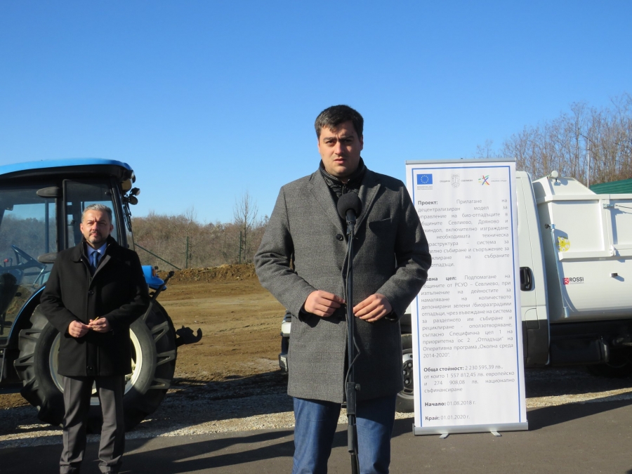 Успешна реализация на проект „Прилагане на децентрализиран модел за управление на био-отпадъците, включително изграждане на необходимата техническа инфраструктура – система за разделно събиране и съоръжение за рециклиране на събраните био-отпадъци“, финансиран от Оперативна програма „Околна среда 2014 – 2020 г.“ отчете днес Община Дряново с откриването на площадката за компостиране. Лентата прерязаха кметът на Дряново г-н Трифон Панчев и кметът на Севлиево д-р Иван Иванов.