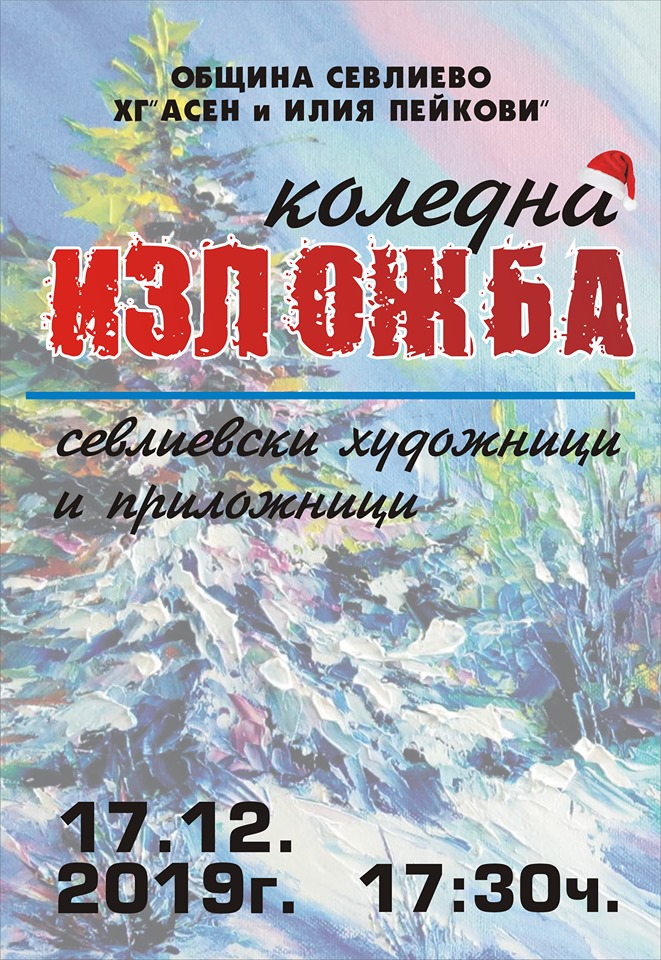 На традиционната коледна изложба на севлиевските художници и приложници кани градската галерия „Асен и Илия Пейкови“ утре. Тази година в нея ще вземат участие 14 художници и двама приложници.