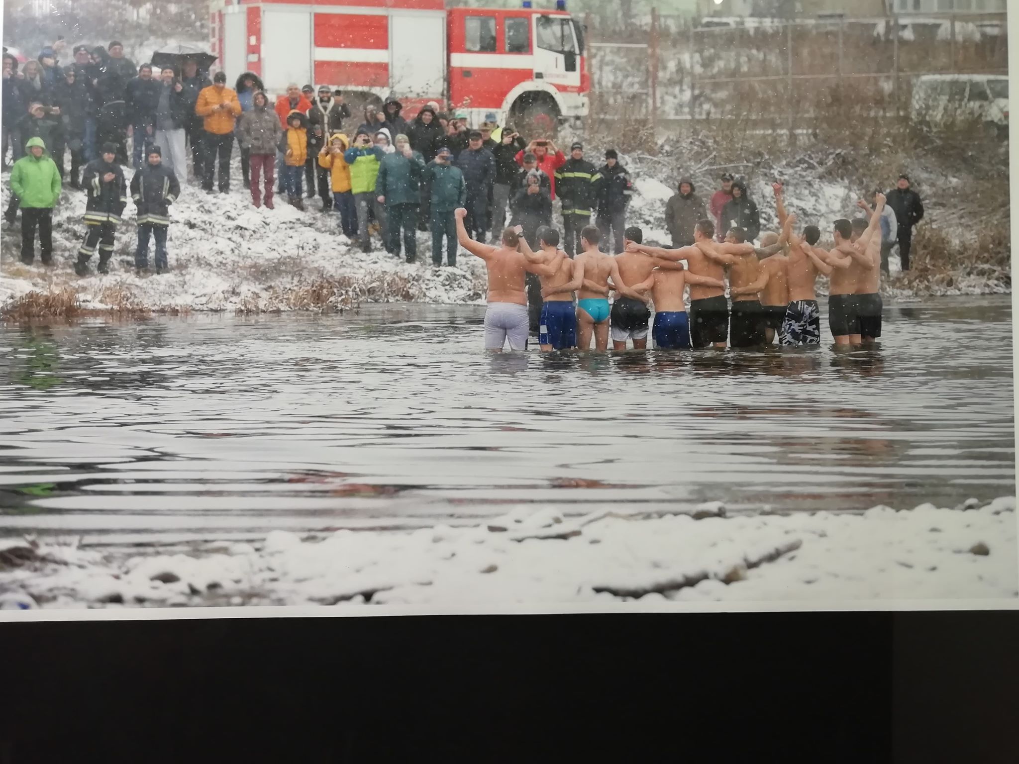 Двете снимки са уникални – направени в един и същ момент, но в лице и в гръб на мъжете, които на 6 януари се хвърлиха в реката, за да извадят кръста.