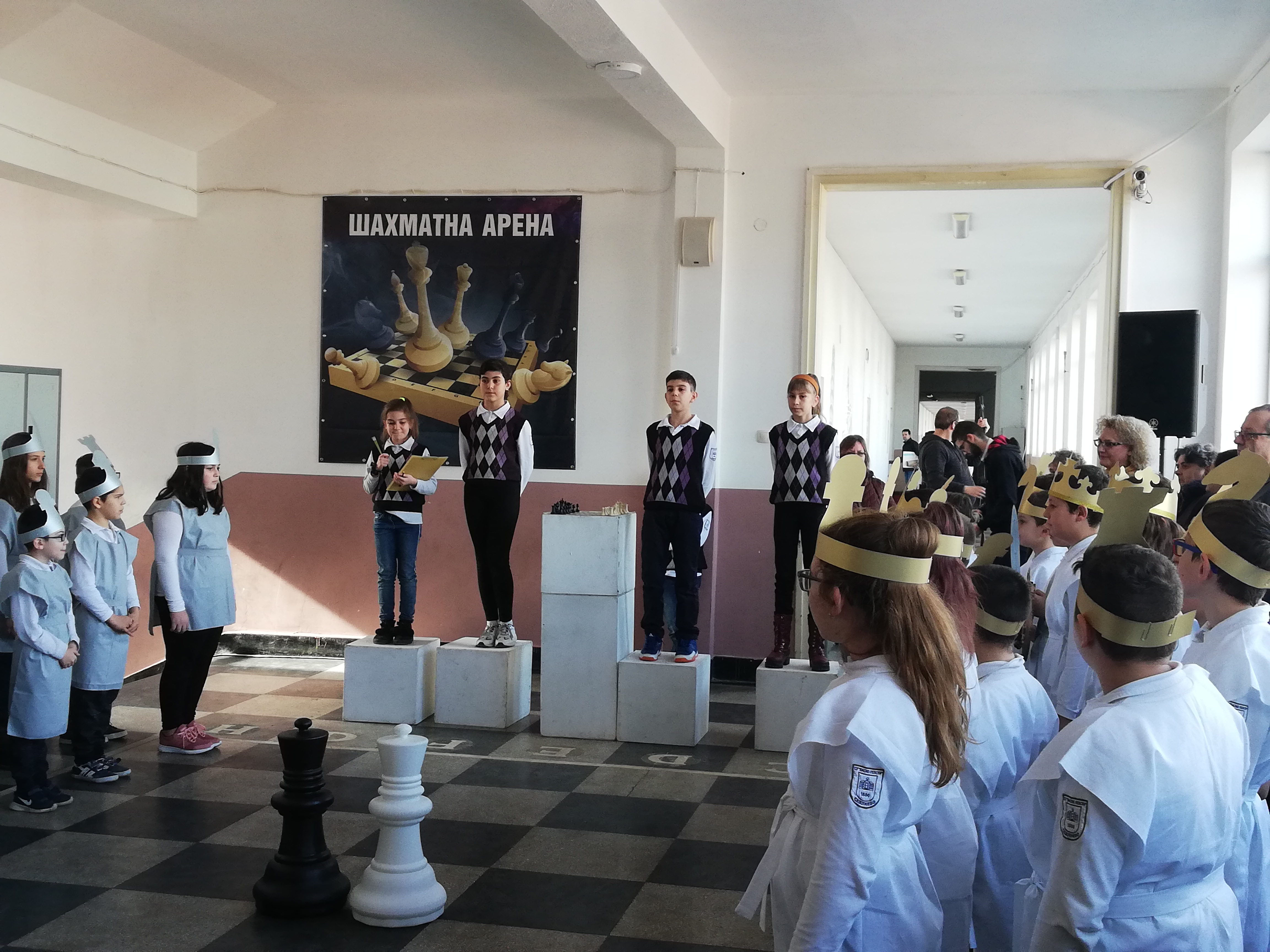 Представлението завърши с песента за шаха, а г-н Томев – директор на СУ ,,Васил Левски”, награди участниците с медали и грамоти. Той разказа легенда за играта, а всички деца, техните преподаватели и родители бяха щастливи и усмихнати.