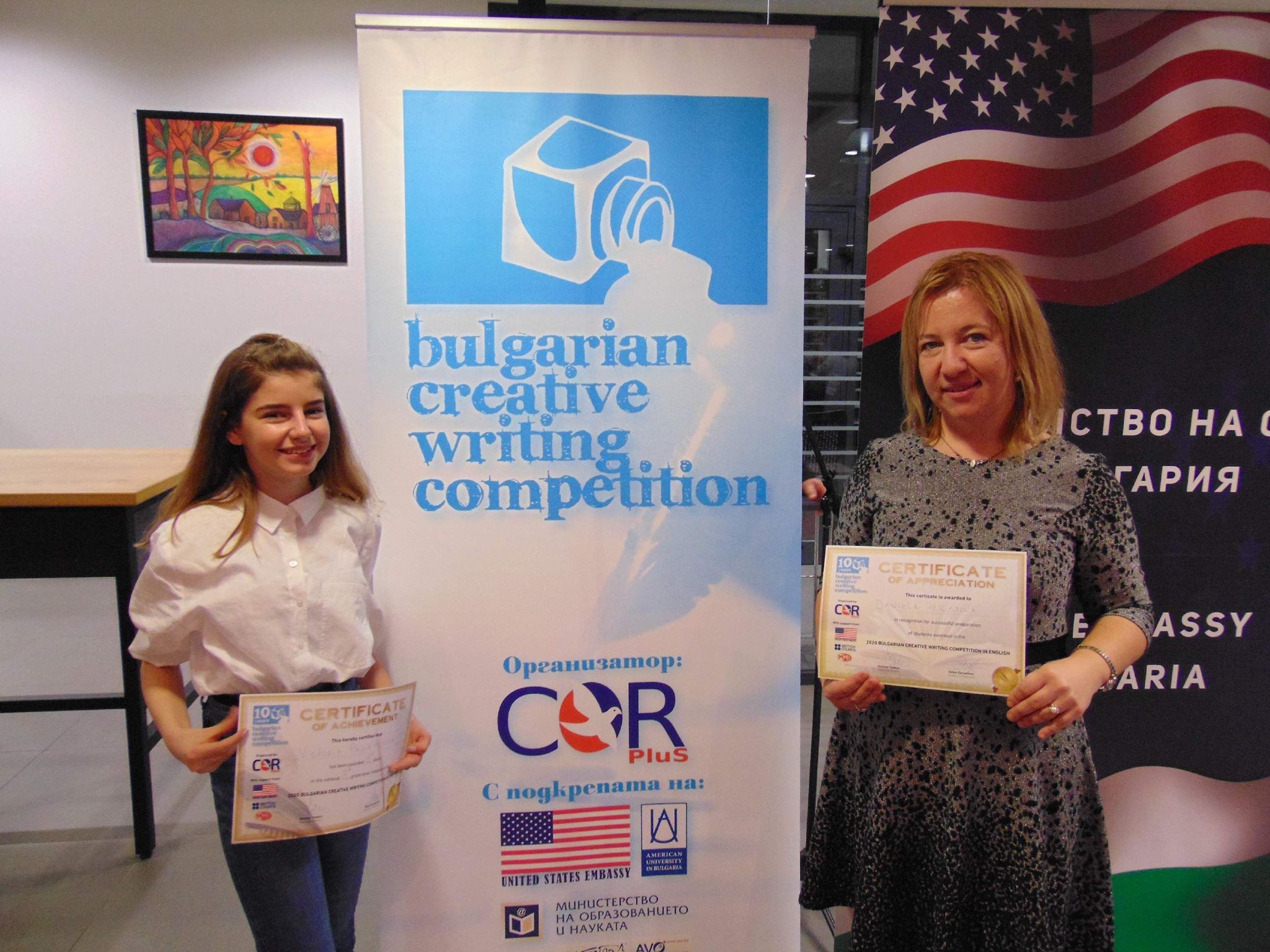 На официална церемония в Американския университет в Благоевград Виктория Панайотова от 7 „а“ клас на СУ “Васил Левски“ получи наградата си за творческо писане, за която в. „Росица“ писа в края на януари. Това се случи на 15 февруари, когато бяха наградени всички победители в Десетото юбилейно национално състезание по творческо писане на английски език.