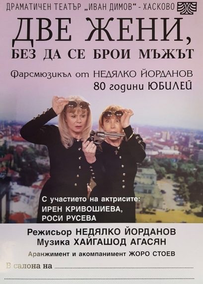 Спектакълът „Две жени, без да се брои мъжът“ идва в Севлиево на 27 февруари от 19:00 часа в Дом на културата „Мара Белчева“. Автор и режисьор е Недялко Йорданов, музиката е на Хайгашод Агасян, аранжимент и акомпанимент – Жоро Стоев.