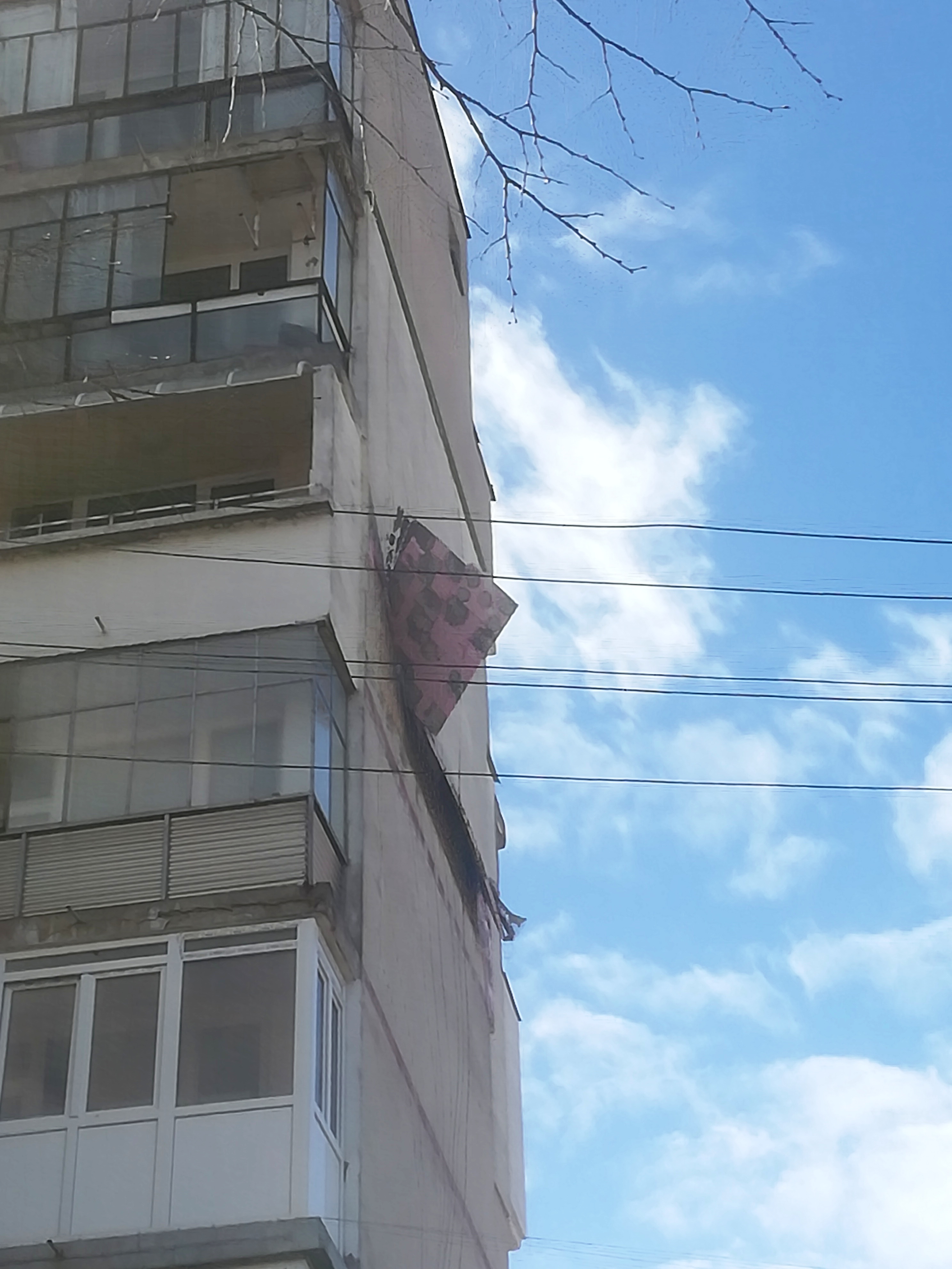 Сериозна заплаха за преминаващи пешеходци и моторни превозни средства е била и отлепила се от силния вятър облицовка от жилищен блок на ул.”Христо Ботев” №1., ет. 6. Наложило се е районът да бъде отцепен за движение до отстраняване на щетите и причините за евентуално произшествие. Силният вятър не е пощадил и големия бор в двора на бившето училище “Св. св. Кирил и Методий”.