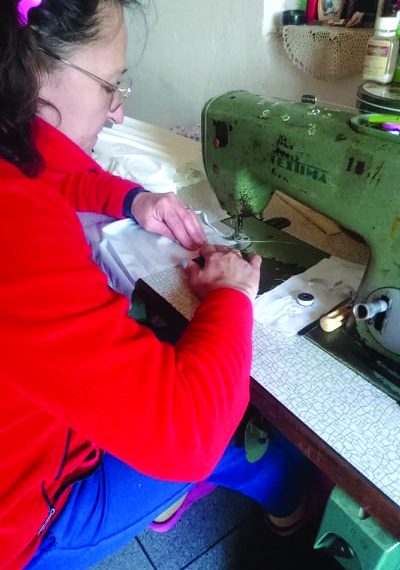 дома си импровизиран шивашки цех. Христина шие маските, после съпругът й