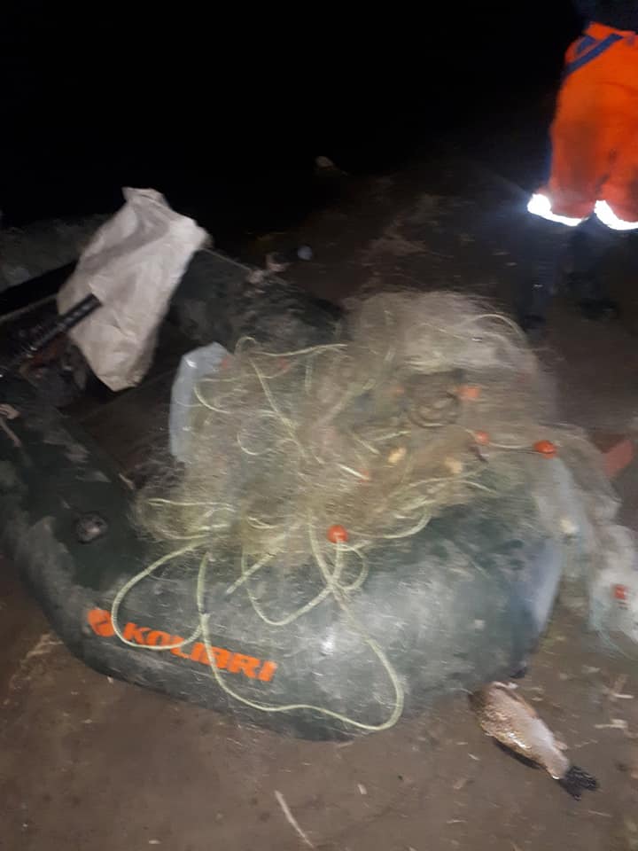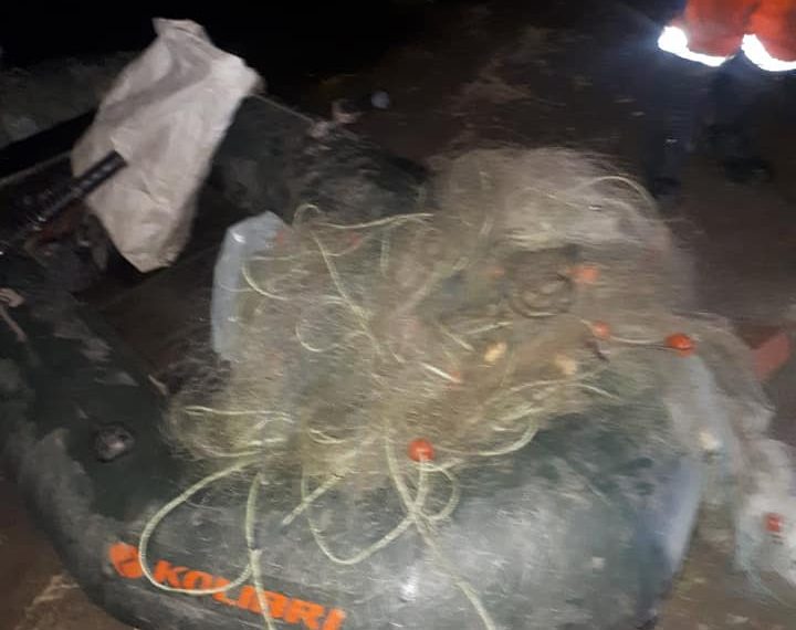 шест хрилни мрежи с приблизителна дължина около 350 метра, една лодка,