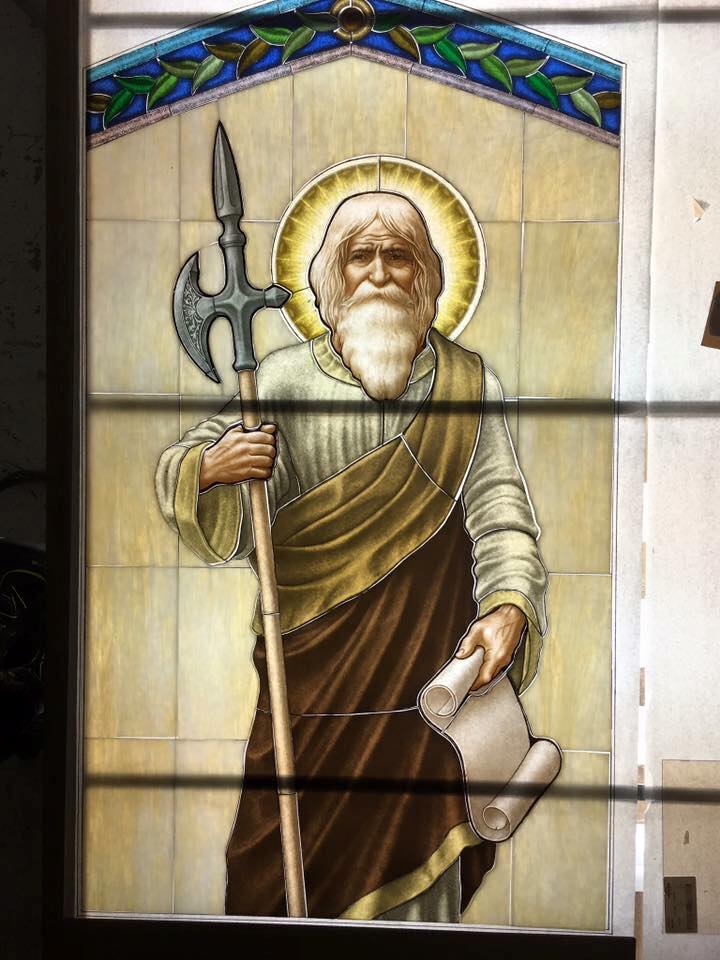 Още преди години е възхитен от боголюбивото дело на дядо Добри. Затова решава да изобрази като светец възрастния беловлас човек, станал символ на доброто за българите. „Много мои познати американци знаят за неговото дело и одобряват това, че съм го изобразил като светец“, разказа в интервю за в. „Росица“ още преди година творецът. Така образът на живия все още тогава български светец, грее в църквата „Имакюлейт консепшън“ в Елмхърст, щата Илинойс, като един от 12-те апостоли – св. Матия.