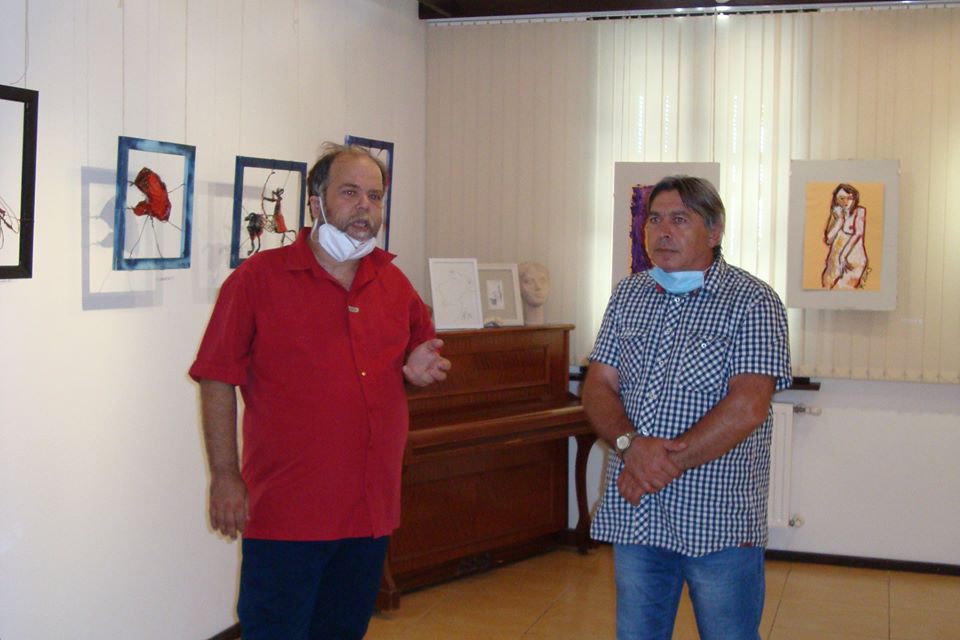 Валентин Русинов призна, че е много щастлив да нареди творбите си в галерия „Асен и Илия Пейкови“ и все пак настоя, че тя е ретроспективна, защото събира рисунки, керамика, живопис от различни етапи на творческия му живот.
