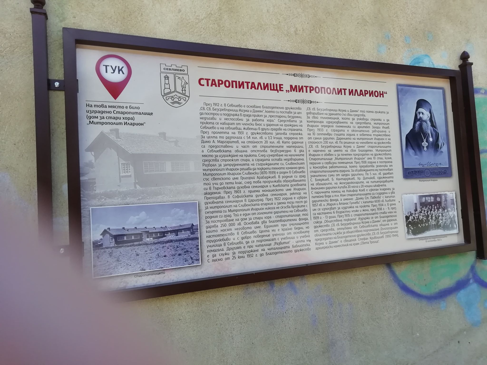 Паметна плоча бе поставена преди месец на северната стена на оградата на бившия завод „Оригинал“, където преди около 70 години се е намирало старопиталището на нашия град. В днешно време това понятие никак не е популярно, особено сред младите поколения, но справка с тълковния речник сочи, че старопиталище е обществено заведение за приютяване на изоставени и немощни стари хора. Оказва се, че около 30-те години на миналия век в много градове на България се създават такива заведения, като най-често това става с лични дарения на по-заможни хора. Старопиталищата са просъществували докъм 60-те години на миналия век, след което дейността им по една или друга причина е прекратена. Тогавашните старопиталища нямат общо с днешните домове за възрастни хора.