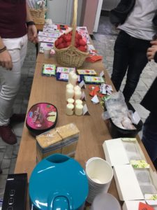 В кутията за валентинки, поставена във фоайето на училището, гимназистите пускаха поздравите си за своя приятел или половинка чрез любовно пожелание по случай празника. Базарът бе открит след първия учебен час, а от щандовете надничаха страхотни картички, украсени свещи, сладки бисквитки и малки интересни любовни джунджурийки, изработени от учениците. Джагата, която ще бъде закупена за Антистрес стаята чрез събраните средства от базара, ще даде възможност за забавление през междучасията.