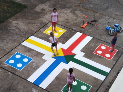 Учители от начален етап в СУ „Васил Левски“ се обединиха около идеята да направят цветни и интересни образователни игри за учениците от 1. до 4. клас. Чрез тях децата едновременно да могат да играят и да учат на открито. По този начин ще се използва ефективно и свободното пространство в двора, около вековната сграда на училището.