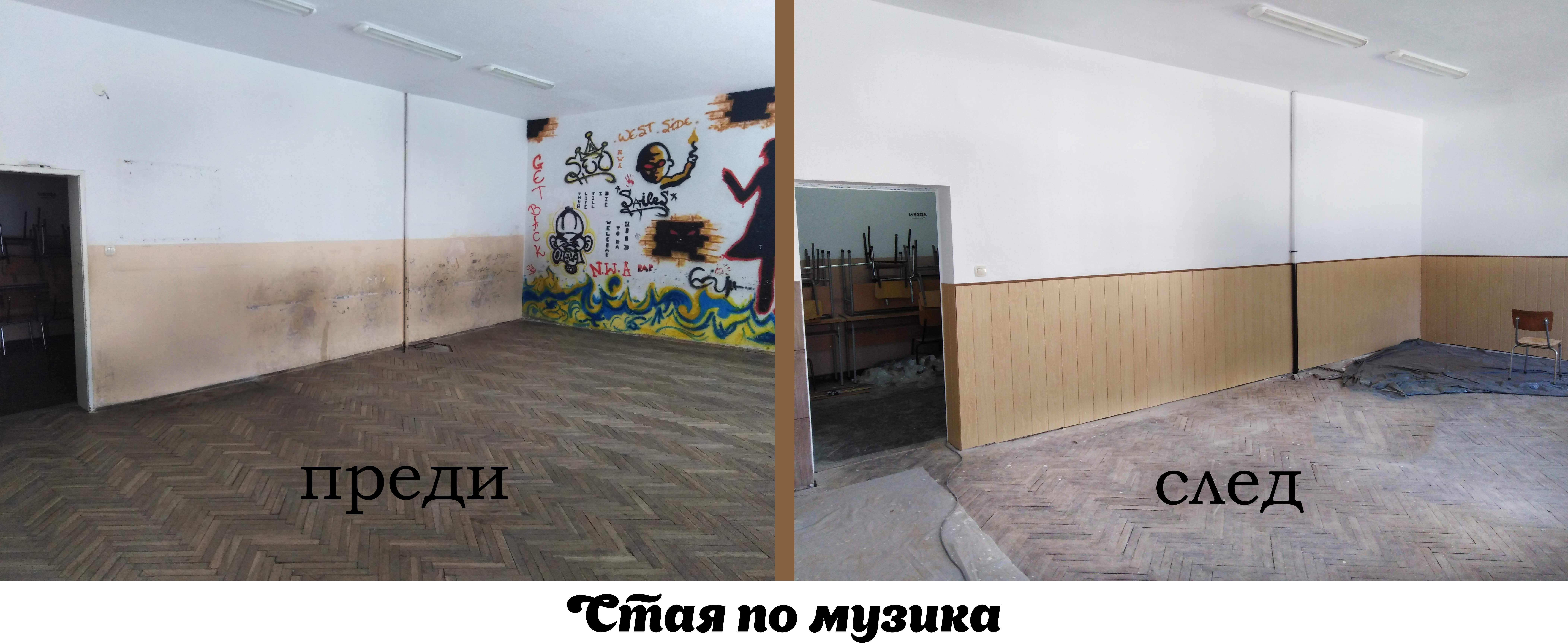 В резултат три класни стаи са напълно обновени – стените са облицовани с PVC ламперия, обособени са санитарни ъгли, ВиК инсталациите са частично подменени, а подпрозоречните рамки са покрити със специално керамично покритие. Извършено е и цялостно пребоядисване на всички помещения. В класните стаи предстои още поставяне на дидактически материали от страна на учителите, за да добие всеки кабинет завършен вид. Вратите на учителските стаи за пособия и на медицинския кабинет са подменени с нови. Предстои изцикляне на подовата настилка – паркет, от старозагорска фирма, специализирана в извършването на тези дейности. В лятната програма за ремонти още е заложено пребоядисване на физкултурните помещения за учениците от първи до четвърти клас.