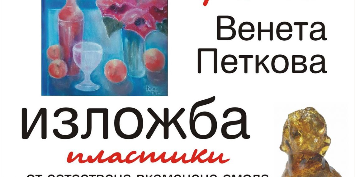Юбилейна изложба на Венета Петкова – живопис, и на Габриел Илевски – пластики от естествена вкаменена смола и картини, ще бъде открита утре от 17.30 часа в градската художествена галерия „Асен и Илия Пейкови“.