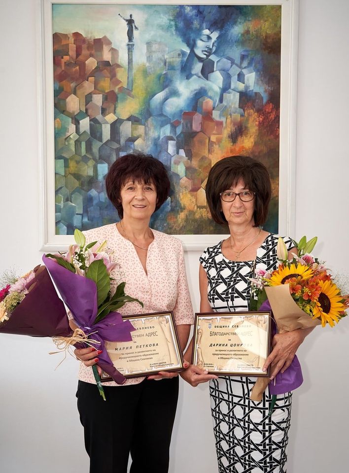 “Над четири десетилетия с мъдрост и много любов към подрастващите, с висок професионализъм и всеотдайност те работиха за реформата в предучилищното образование, за създаване на условия, в които се стимулират както професионалното израстване на педагозите, така и творческите способности на децата в поверените им детски заведения”, каза д-р Иван Иванов. Всеобщо е признанието, че “със своя неуморен труд през всичките си години като учители и директори, те успяха да възпитат много отговорни, добри и признателни, вече пораснали успешни хора. Мария Петкова и Дарина Цонкова оставят след себе си обновени и осъвременени детски градини, множество постижения, успехи и реализирани проекти”, каза още кметът.