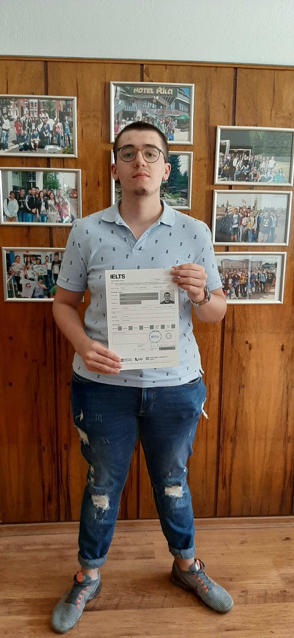 Отлични резултати на международно признатия изпит по английски език IELTS получиха дванайсетокласниците Аксел Кочум