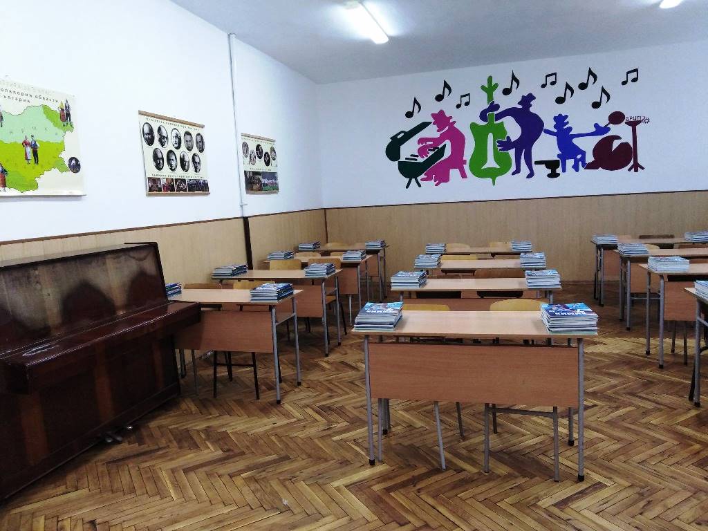 Особена атмосфера цари в класната стая на 7 „д“ клас, на г-жа Ваня Ангелска, в която екип от ученици ентусиасти реализира проекта „Веселите музиканти“. Идеята за абстрактните рисунки е на Борислав Маринов от 12 „б“. Привлечени към идеята бяха още Иоан Данаилов и Мартина Тотевска – 12 „б“, както и Ренета Николова – 11 „а“. Учениците успяха за три дни да изрисуват ремонтираната класна стая, изразходвайки минимални средства и подкрепени от преподавателите по изобразително изкуство Иван Иванов и Иван Денчев.