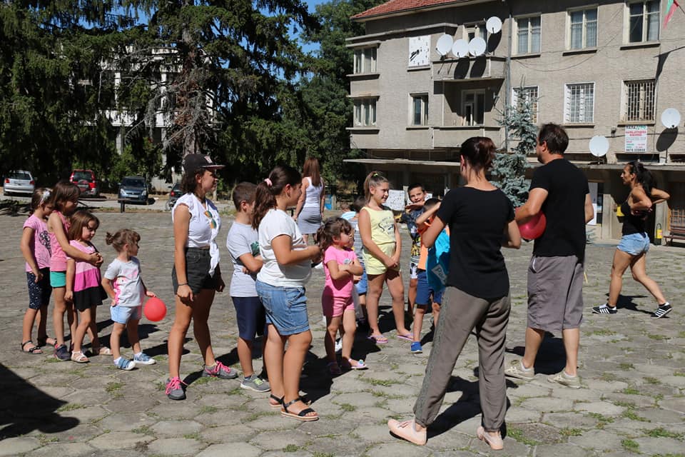 И ето ги Деси и Емо от „Малка театрална компания“ Габрово, които откриха празника и обещаха един динамичен и пъстър летен ден. Поканиха децата за една загрявка и започна едно лудо тропане с крачета, шляпане с ръчички, въртене на дупета в синхрон с музиката. Разделени на два отбора, „Дъга“ и „Слънце“, със съответните капитани, децата неусетно бяха увлечени в разнообразни игри, насочени към разпознаване на цветовете, естествено и тези на българското знаме, към формиране на математически умения, забавление, много, много движение и чувство на отговорност към отбора. А бързината и досетливостта бяха винаги плюс за спечелване на играта. Трудно се скача с надут балон между краката. Някои деца дори провървяха посоченото разстояние, но не предадоха отбора си. А да разпознаеш само с напипване и с вързани очи предмет, никак не е лесно, но Петър бързо разпозна клещите, Фиген – ракетката за тенис, а петокласничката Еда беше щастлива, че успя да разпознае истинско парче от агнешка кожа. Особено динамична беше играта с ластик, в която се включиха и родителите. А водещите нахъсваха постоянно играчите, публиката не спираше да ги аплодира. Децата бяха закопнели да бъдат заедно. Докосваха се, общуваха, гонеха разноцветни балони по площада. А един любопитко на име Илкай постоянно се въртеше около водещите, „открадваше“ си някои от атрибутите и така изкусно въртеше обръча около тялото си. Кой знае? Може в бъдеще да се окаже отличен атлет или фигурист.