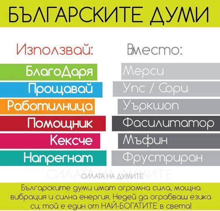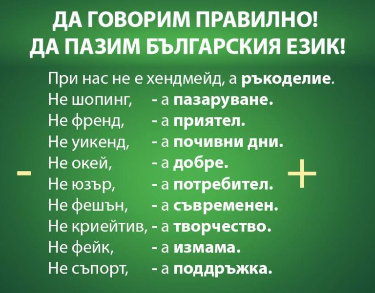 Ние, българите, имаме една от най-старите писмености. Като народ обичаме своя език. Същевременно, поради народо-психологически характеристики, са внедрявани турски думи /обяснимо е/, после френски – „Криворазбраната цивилизация” на Д. Войников, след това немски, руски и сега – английски. Според Любен Генов и доц. Владимир Миланов от Софийския университет, в нашия благозвучен и богат език годишно навлизат около 500 чужди думи, които трябва да се ограничават. Вазов с възмущение е отразил тази напаст: „Език прекрасен, кой те не руга!”