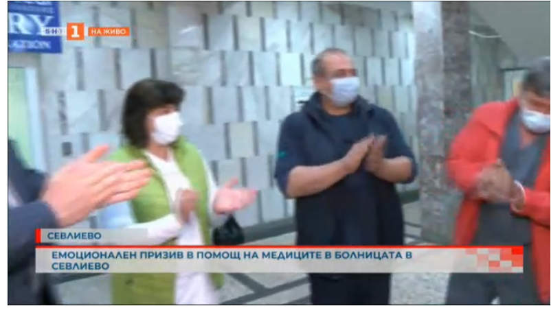 “Медиците от МБАЛ “Д-р Стойчо Христов”, изтощени от преумора и в очакване на подкрепление от доброволци и колеги, ръкопляскаха тази вечер в ефир на всички севлиевци, които стриктно спазват противоепидемичните мерки” – това съобщи и показа в понеделник Българската национална телевизия.