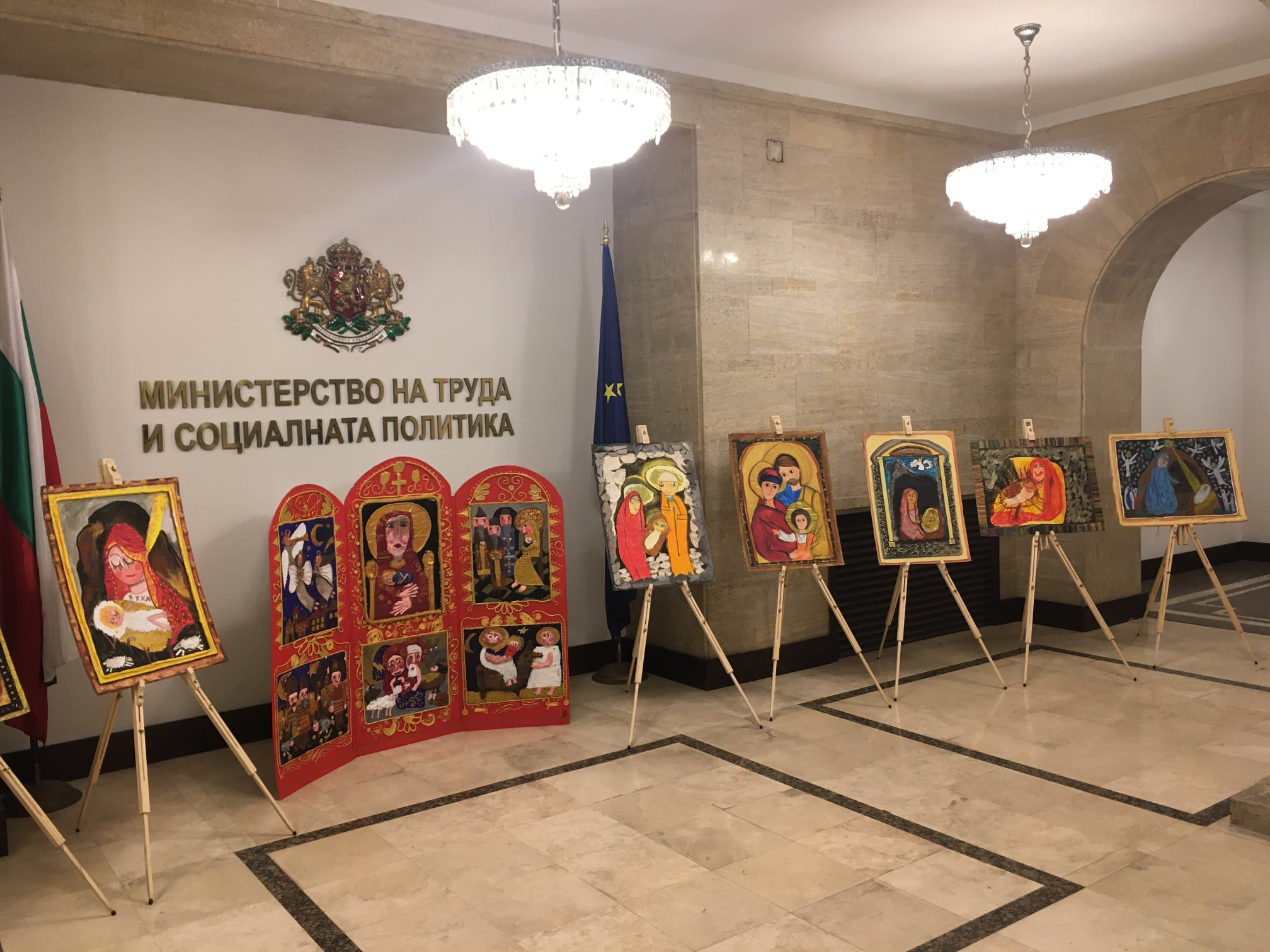 Прекрасните творби от изложбата “Да бъде светлина” на сдружение “Духовно огледало” вече краси централното фоайе на Министерство на труда и социалната политика. Творбите са дело на талантливите деца от арт център “Видима” с преподавател Снежана Велчева, от ателие “Приказен свят” гр. София и от школа “Духовно огледало” с. Куртово Конаре. Децата от Севлиево се представиха с иконостас и икони на светци.