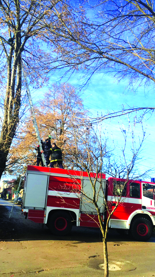 Пожарникарите Даниел Минчев, Ивайло Банков, Станислав Петков и Илиян Николов участваха в необичайна спасителна операция по празниците. Те свалиха домашно отглеждан паун от близо 20-метрово дърво в Севлиево.