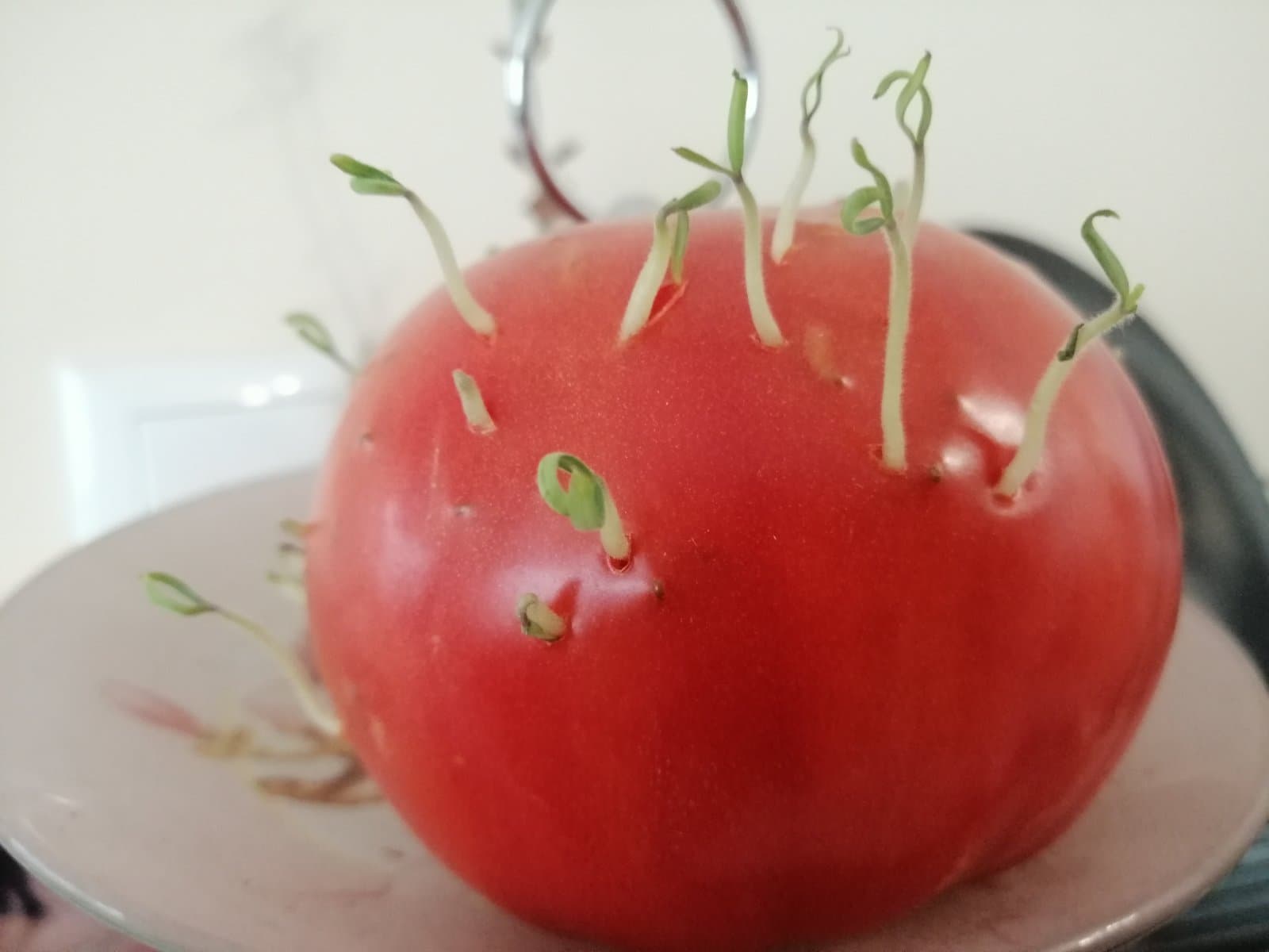 Домат покълна само няколко дни след като бил закупен от магазина. Семейство Боевски пазарувало преди празниците от малък магазин в Севлиево. Сред покупките им имало и домати, които те не прибрали в хладилник, което не е необичайно. Няколко дни по-късно те с изненада установили, че от един от доматите са избили повече от 20 кълна.