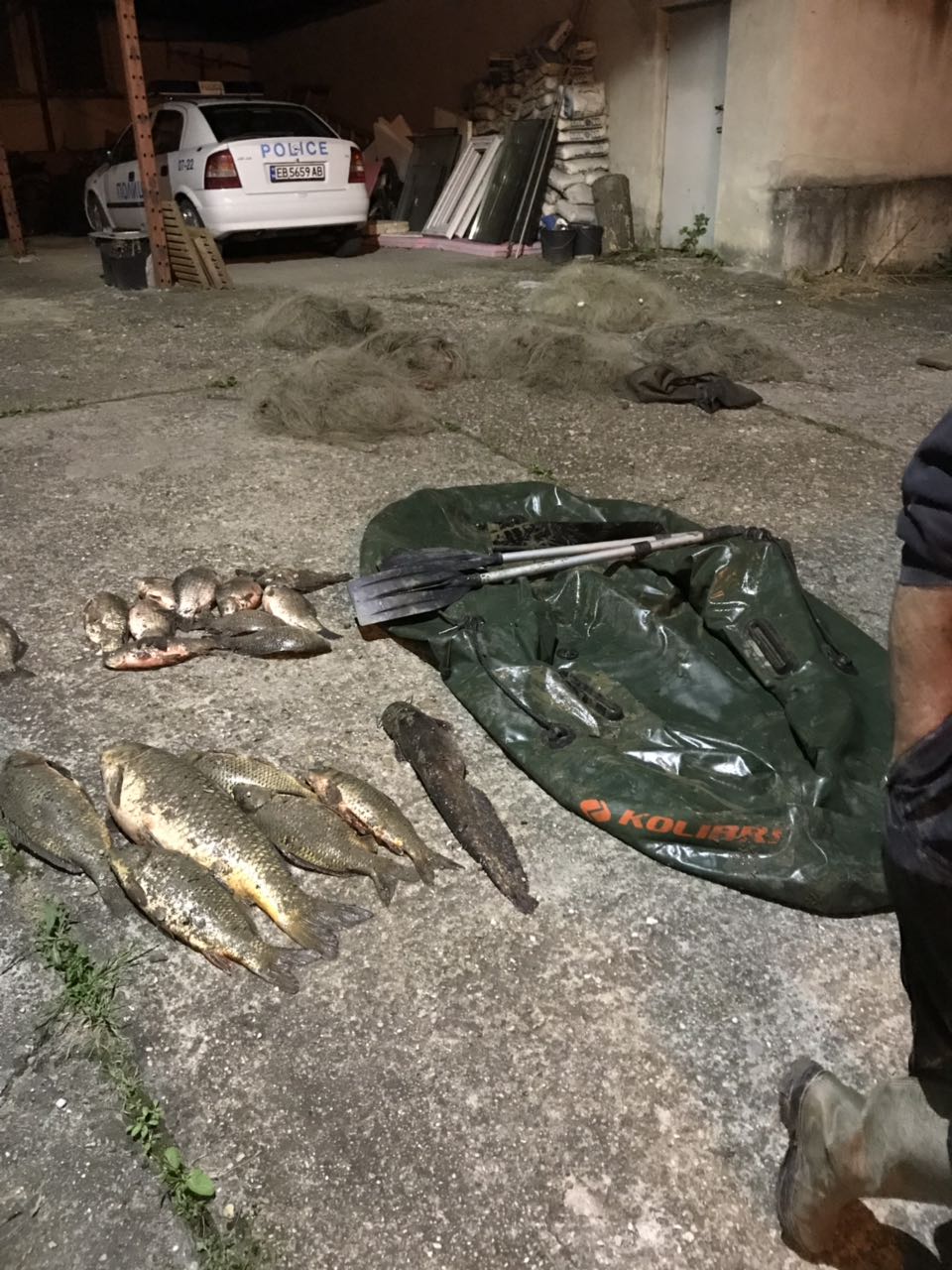 Инспекторите извикали дежурни от полицията в Севлиево. И в първите часове на 4 май двамата бракониери вече лежали на земята с белезници на ръцете, гумената им лодка била конфискувана, а уловът им и мрежите – в ръцете на инспекторите. Когато ги осветили, никой не се изненадал – и двамата се оказали стари-стари познайници на органите на реда, с десетки актове за незаконен улов на риба. Единият – споменатият в началото И. А., се ползва от милостта на закона като инвалид. Другият – с инициали е Х. М., е също бракониер рецидивист, без собственост, за да не си плаща глобите. Джипът, естествено, бил чужд, с варненски номер, така че не можело да бъде конфискуван.