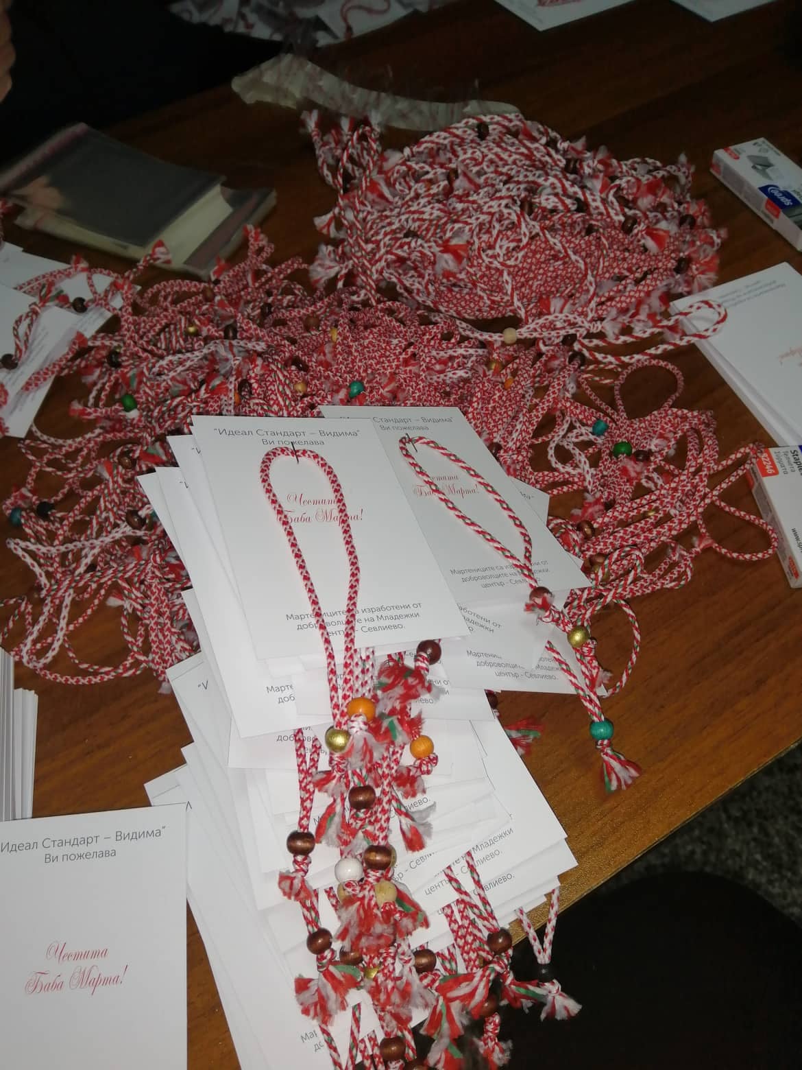 Наближава месец март и Младежкият център в града ни отново се превърна в работилница за мартеници. За втора поредна година екипът и доброволците на центъра подготвят червено-белите символи на здравето за служителите на „Идеал Стандарт – Видима“ АД. Вече втора седмица кипи усилен работен процес за изработката на 3700 броя мартеници.