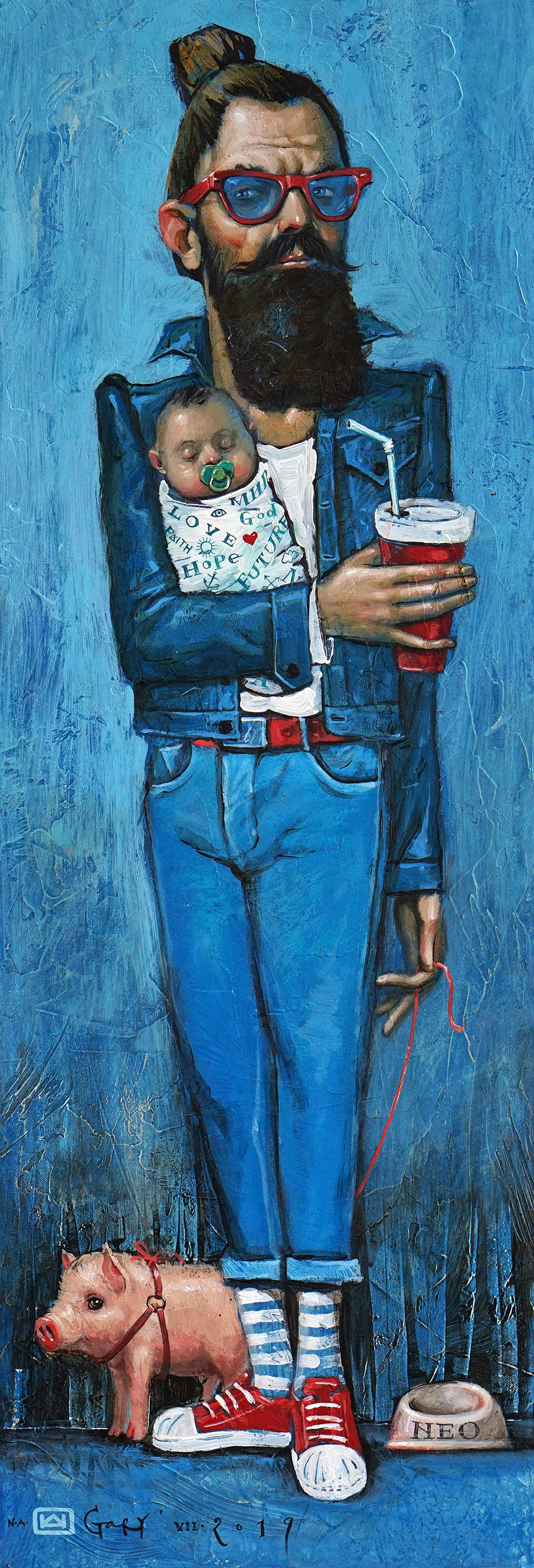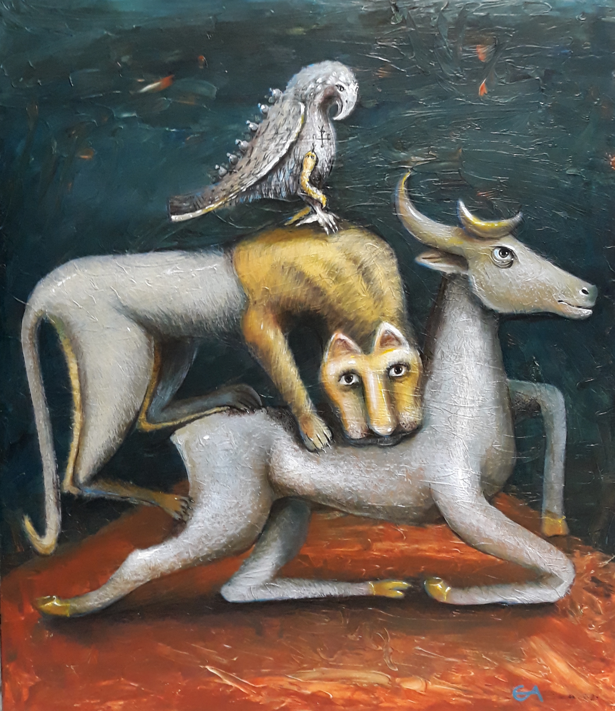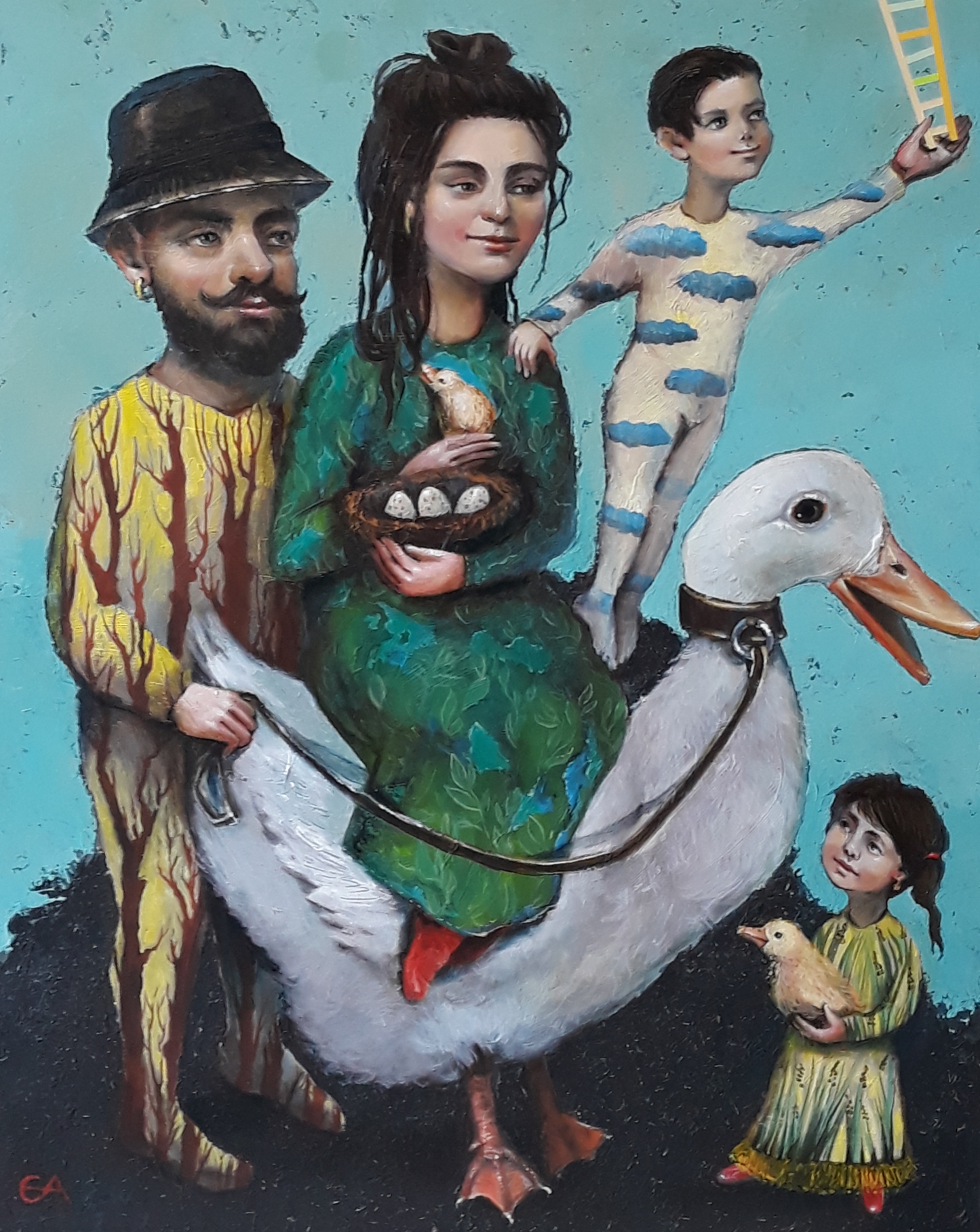 По един приятен за окото, хумористичен, ироничен и шаржово-иконичен начин Гари и Ели ни въвеждат в тяхното сюрреалистично пространство, където оживява образа на човека от новия век. На пръв поглед леки и неангажиращи, творбите създават у зрителя приятно усещане, спонтанно се появява натрапчива усмивка. При първата си среща с тях, човек лесно може да помисли, че всички картини са рисувани от един и същ художник. Сходствата са неизбежни, все пак и двамата автори споделят един дом, едно ателие и една страст. Майсторски овладяната рисувателна техника ни освобождава от паразитното търсене на движението на четката, наслояването на бои и смесване на цветове, което говори много за трудолюбието, вниманието към детайла и таланта на авторите. Картината се възприема като цялостен завършен образ. Но всичко това е само на пръв поглед. В следващия момент се сблъскваме с многозначителност породена от богатата атрибуция, символика и колорит на изобразените герои. За щастие, веднага ни идва на помощ нашата вътрешна библиотека, в която грижливо сме архивирали всяко свое знание за цялата световна история и култура. Пред очите ни започват да се сглобяват образи от символи и знаци, всякакви възможни и невъзможни комбинации от духовния и материален свят. Всичко създадено от човека и за човека. Спокойно може да се каже, че Гари и Ели предизвикват с творчеството си нашата обща култура, провокират ни да се разровим из архивите и да си спомним. Точно тогава започваме да различаваме коя картина на кого е. Откриваме в платната на Ели девицата, младата майка, образа на детето, на семейството, следобедните игри и приказките за лека нощ. Усещане за сплотеност, заедност, веселие, лекота и отнесеност. Нейното потапяне в миналото ? помага да достигне до изконните ценности. От другата страна е Гари, бащата-супергерой, той ни разкрива опасностите на външния свят, той е този, който наблюдава и брани. Предупреждава ни за реалността и заплахите, които се крият в нейните най-различни форми – похот, алчност, властолюбие, фалш. Той дефинира явните белези на базата на които осъждаме. „По дрехите посрещат….“, но акцентирайки върху своите наблюдения, той всъщност ни помага да разшифроваме и да разплетем невидимите вътрешни връзки и потребности по които „изпращаме“.