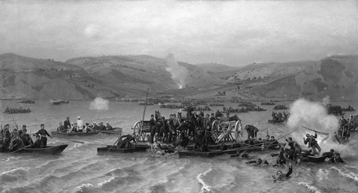 Сутринта на 16 юни 1877 г. към 6 часа , войниците от 14-та девизия форсират Дунава, овладяват стръмния бряг, превземат караулката в мелница‚ караджейка и създават плацдарм за настъпление. В битката загиват 812 души. Две планински оръдия са потопени от вълните на Дунав, заедно с батарейния командир подполковник Стрелбицки. След известен престой, на 17 юни, на разсъмване минават на десния бряг българските опълченци – 7200 души. На колене със сълзи на очи целуват родната земя. Те се базират при лозята до Текир дере. Опълченецът Лазар Филипов е записал: “…на всяка крачка се виждаха следи от кървавия бой. Всички трупове бяха събрани-едни с фесове, други с фуражки… работата е била сериозна“