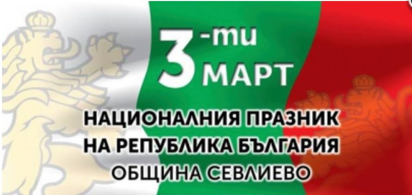 С тържествена церемония Община Севлиево ще отбележи националния празник на Република България – 3 март. Тази година се навършват 143 години от Освобождението на България от османско иго, 143 години от възкресението на българската държава.