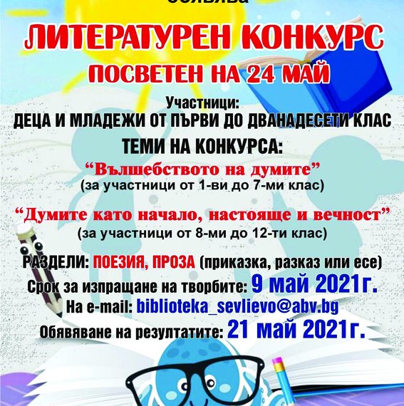 Краен срок за предаване: 9.05.2021 г. на е-mail biblioteka_sevlievo@abv.bg