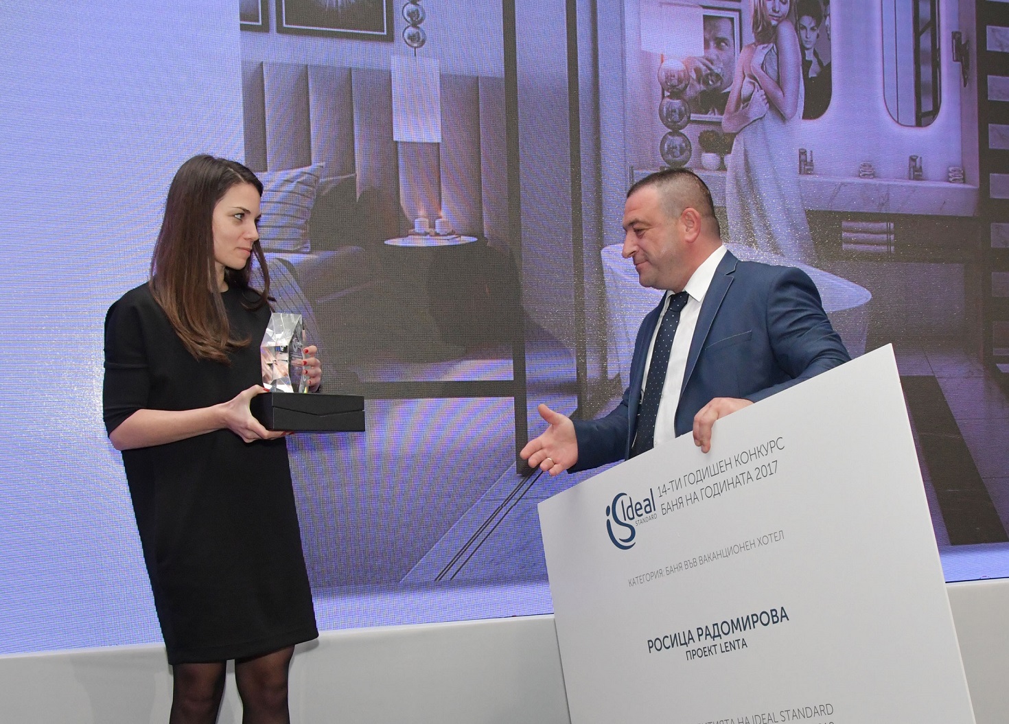 Лазар Лазаров връчва награда на Росица Радомирова