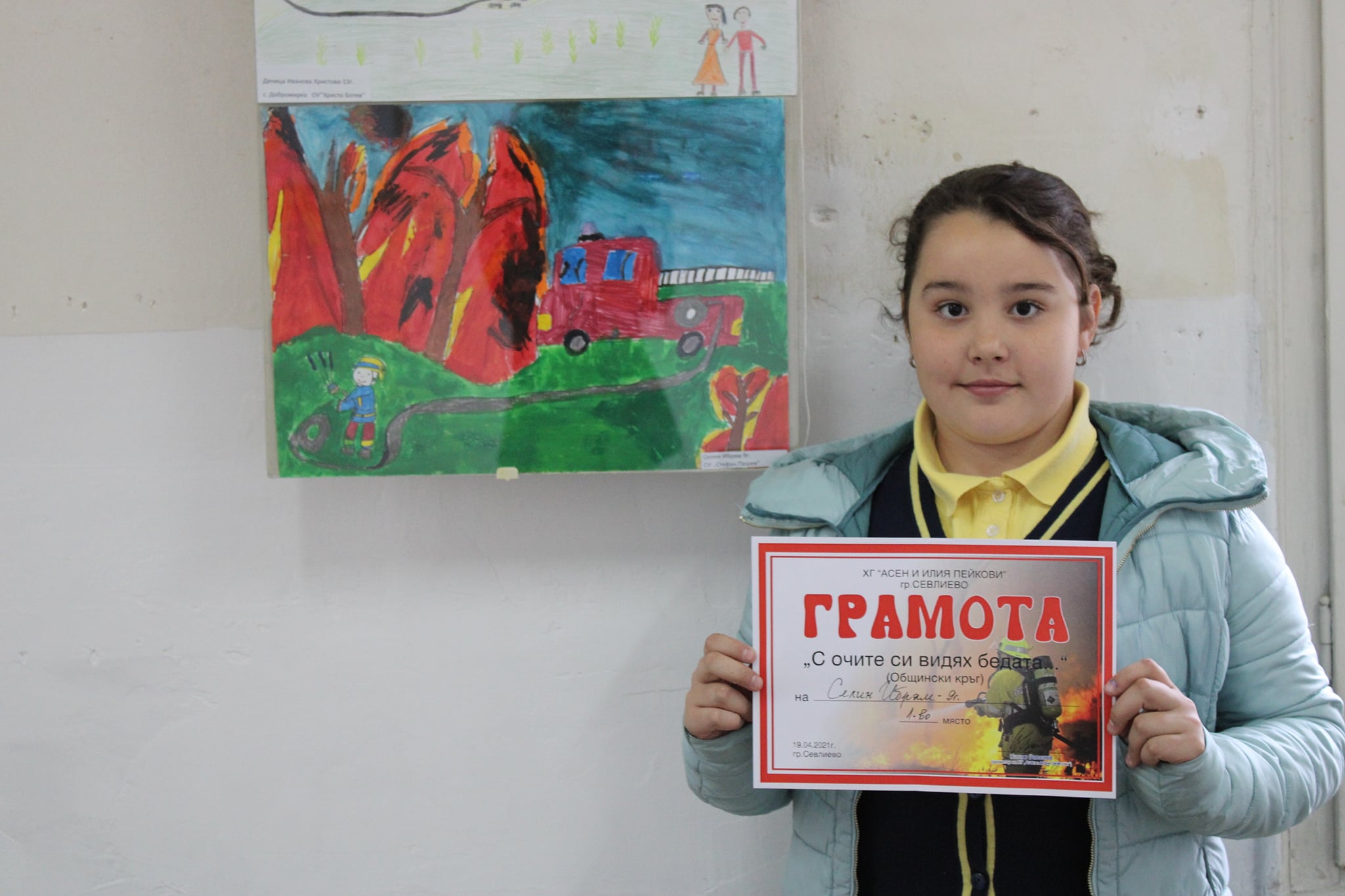 От група „Училища“, възрастова група 7-10 г., призовото място зае 9-годишната Селин Ибрям от ОУ „Стефан Пешев”. На второ място е рисунката на Никола Иванов (8 г.) от ОУ „Стефан Пешев”, а на трето – Ивана Огнянова (9 г.) от ОУ „Христо Ботев” с. Добромирка. При 11-13-годишните 12-годишната Лилия Криндова от ОУ „Стефан Пешев”, на второ е класирана рисунката на Ивайло Йорданов (13 г.) СУ „Васил Левски”, а на трето е Десислава Друмева (13 г.) ОУ „Стефан Пешев”. Рисунката на 14-годишния Мартин Конов от СУ „Васил Левски” е на първо място в групата на 14-18-годишните. На второ и трето място се нареждат Ивелина Маринова (14 г.) и Тедислава Минчева (14 г.), и двете ученички в ОУ „Стефан Пешев”.